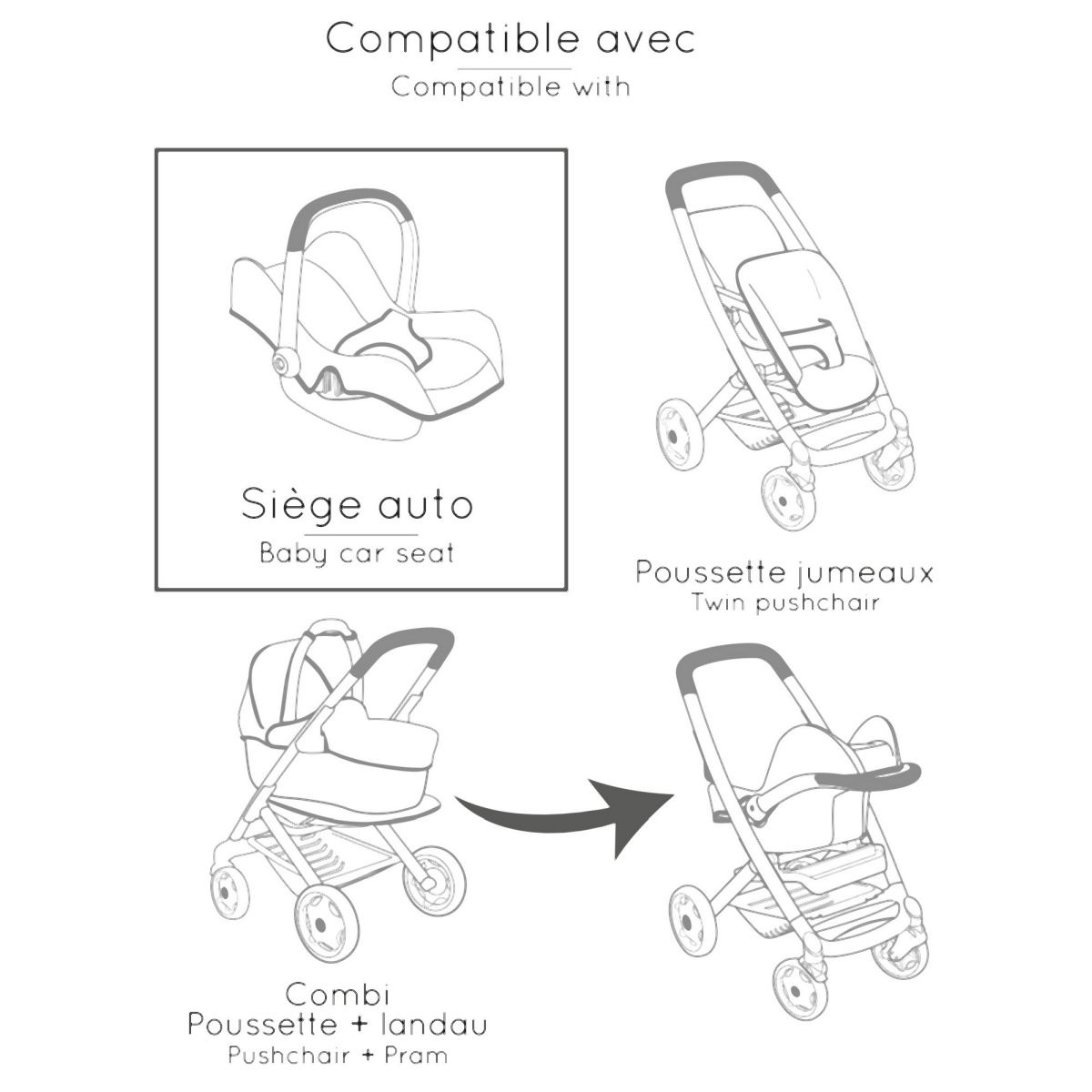 Popis Smoby 3v1 Autosedačka a židlička MC&Q pro panenky béžová