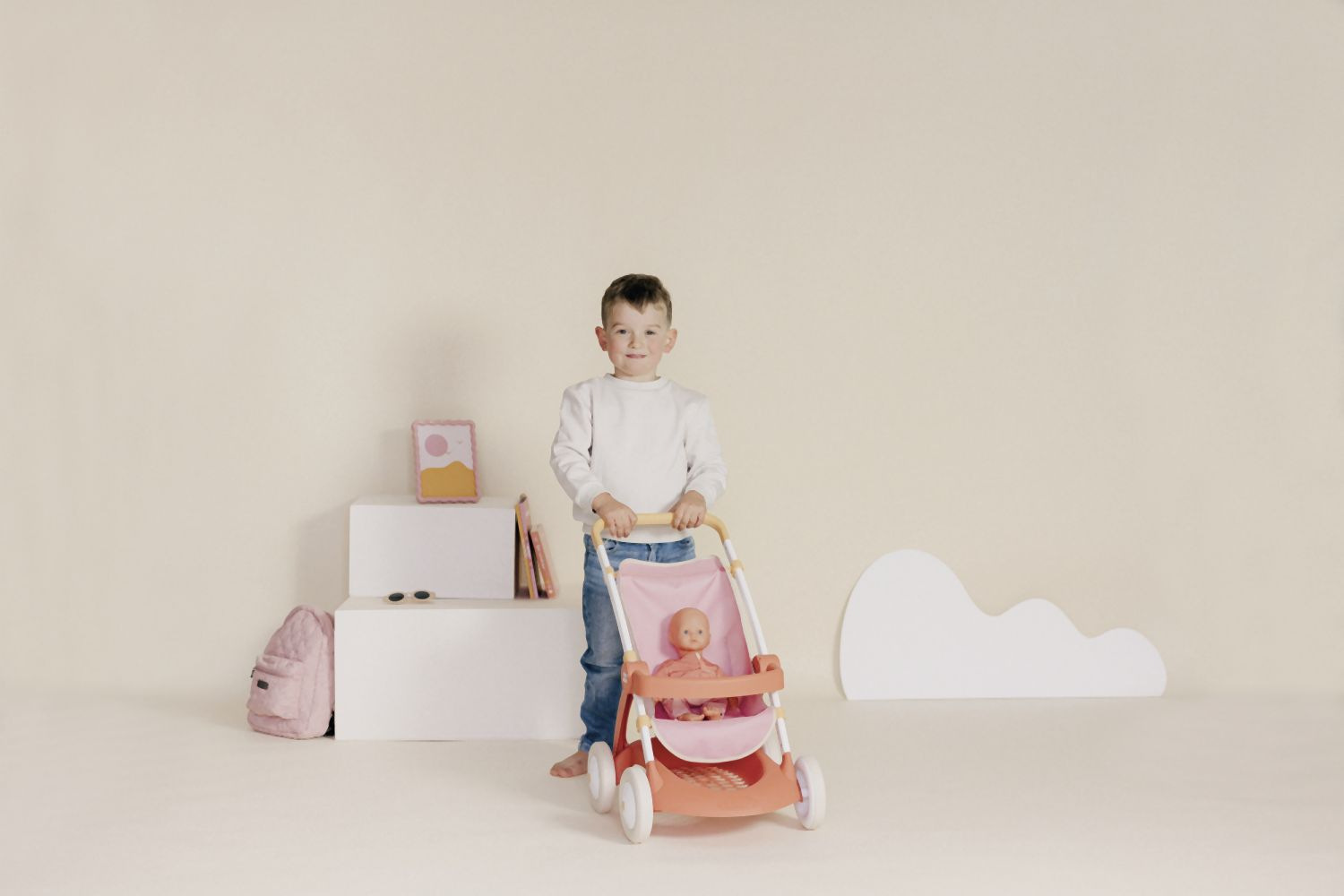 Sportovní trendy kočárek pro panenky z řady Baby Nurse v kouzelných oblíbených barvách. Vhodné pro všechny panenky do 42 cm. Panenka není součástí balení. Vysoce kvalitní a robustní kovový rám zajišťuje odolnost a stabilitu. Díky speciální tkanině se vozík snadno čistí: jednoduše ponořte houbu do trochy vody a pečlivě vyčistěte. S praktickým úložným prostorem pod sedákem. Výška k rukojeti 58 cm. Rozměry (DxŠxV): 58 x 58 x 38 cm.