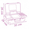 Kosmetický kufřík v designu Disney Princess je naplněn vším, co je potřeba pro skvělé mobilní wellness, ať už jde o účes, nehtový salon nebo make-up. Všech 13 doplňků (atrapy kosmetiky k hraní) najdete uvnitř kufříku s rukojetí, který lze vzít kamkoli: 2 laky na nehty, 2 rtěnky, paleta očních stínů, řasenka, štětec, čelenka, hřeben, prsten a různé nádobky. Díky možnosti zamčení se na cestě z kufříku nic neztratí. Navíc má zrcadlo a tajnou přihrádku. Police uvnitř lze sklopit, pro vytvoření prostoru pro další kosmetiku. Rozměry produktu (DxŠxV): 35,5 x 28,6 x 28,5 cm.