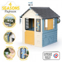 Stabilní, prostorný domeček Smoby Meteostanice. Součástí vybavení domečku je srážkoměr, větrná korouhvička/anemometr, zvonkohra a hravá tabulka, které dětem zajistí spustu zábavy, kreativity i učení. Domeček má malé vstupní dveře, 2 okna s lamelami a 2 posuvné okenice, které lze otevírat a zavírat. Snadná montáž. Módní barevné provedení v modré a žluté dodává herně svěží a moderní vzhled. Čtyři robustní boční stěny jsou navrženy velmi detailně, fasádu domu zdobí květiny v květináčích, zvířatka a motýlci, kteří vytvářejí zábavný design. Domeček je vyroben z vysoce kvalitního plastu odolného vůči UV záření a je zvláště odolný vůči povětrnostním vlivům a vyblednutí. Rozměry produktu (DxŠxV): 102,7 x 121,8 x 143,4 cm. Výška samotného domečku je 127 cm, výška s větrnou korouhvičkou je 147,5 cm.