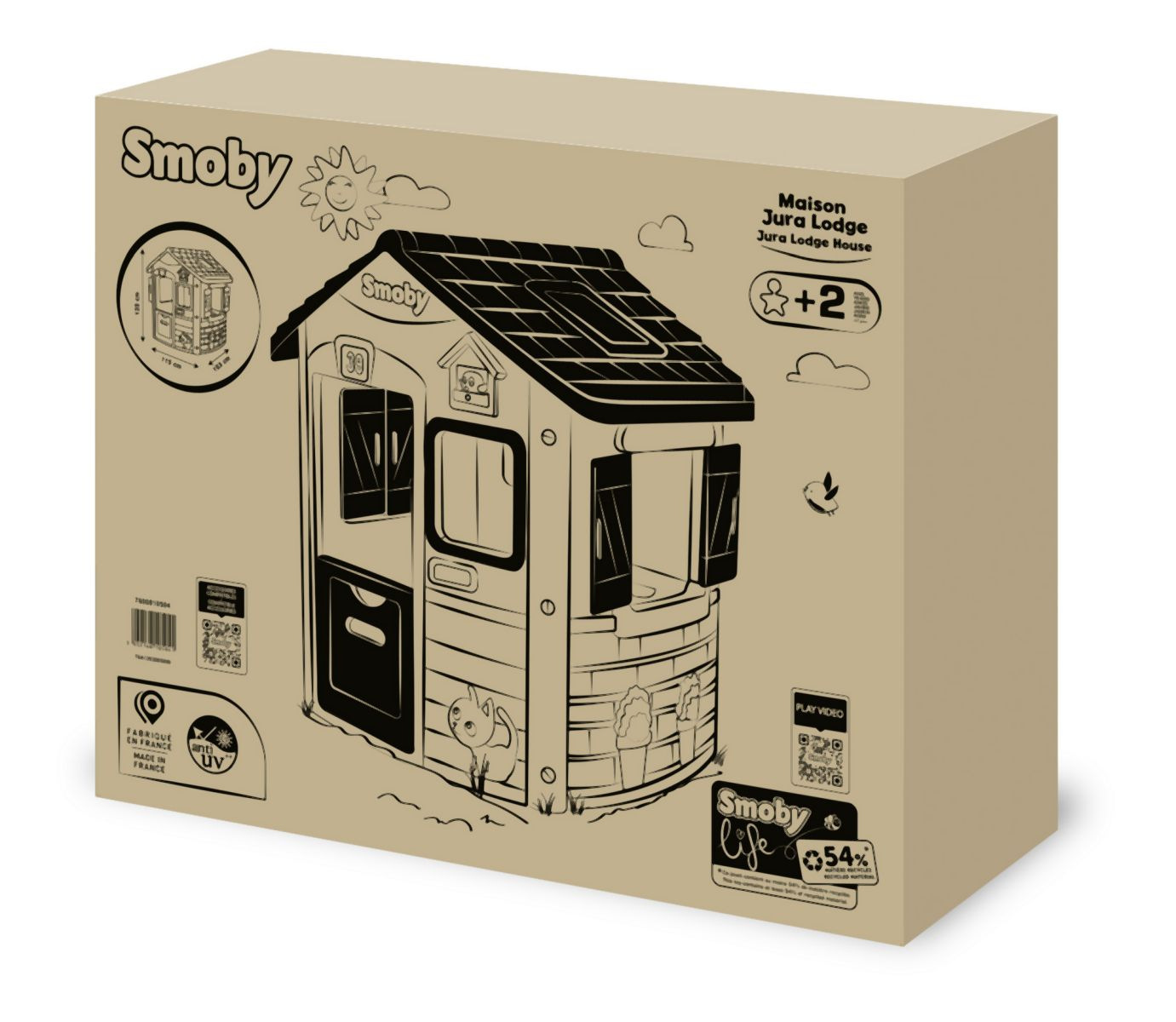 Stabilní, prostorný domeček Smoby Life Jura Lodge. S dvěma vstupními dveřmi (vepředu/vzadu), 2 okny s okenicemi a jedno krmítko pro ptáčky. Snadná montáž. Domeček je vyroben z vysoce kvalitního plastu odolného vůči UV záření a je zvláště odolný vůči povětrnostním vlivům a vyblednutí. Tento výrobek obsahuje minimálně 54 % recyklovaného materiálu a je 100 % recyklovatelný. Tento dům byl speciálně navržen tak, aby bylo možné přidat příslušenství dle vlastního výběru : letní kuchyň, piknikový stůl, slunečník a další. Rozměry výrobku (DxŠxV): 115 x 123 x 132 cm.