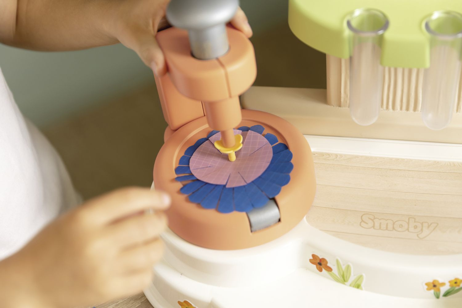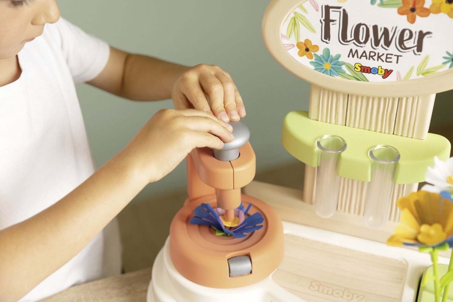 Kreativní sada obsahuje stroj na výrobu květin. Dále mnoho doplňků, např. stonky, květiny, razítka, vázy, papírové tašky, samolepky. Z krabice lze vystříhnout šablony pro další květiny, možno použít i staré látky a tvořit dle fantazie. Lze používat opakovaně, sestavením květin nevznikají nikde žádné dírky. Rozměry rozbaleného výrobku: 44,50 x 37,30 x 24,50 cm.
