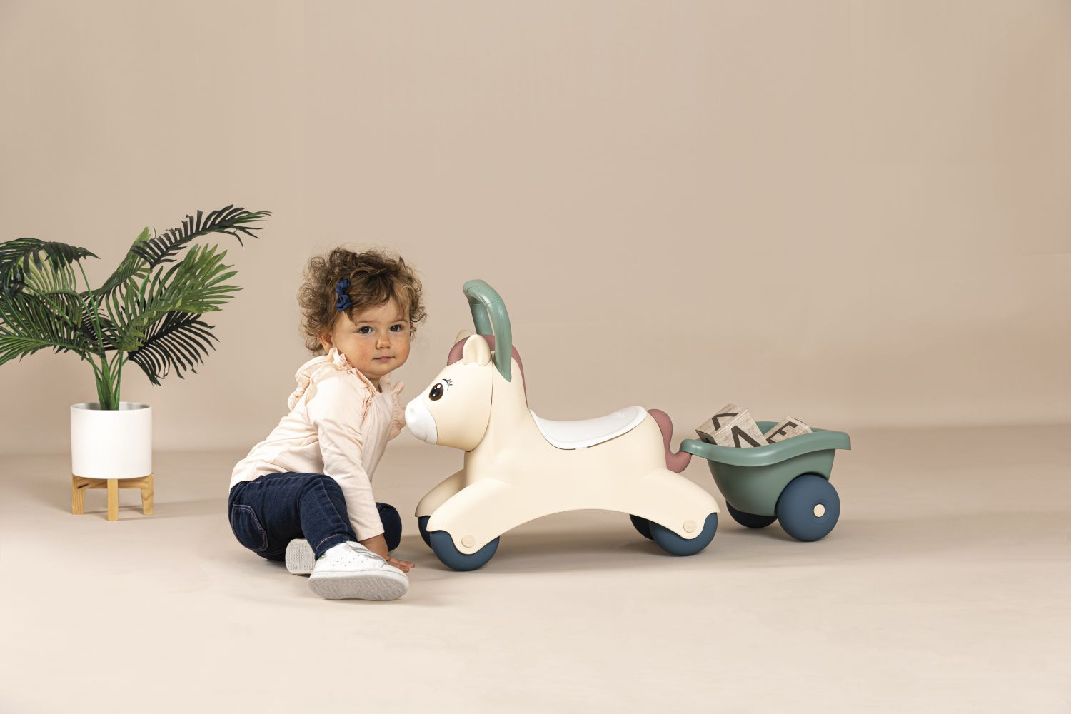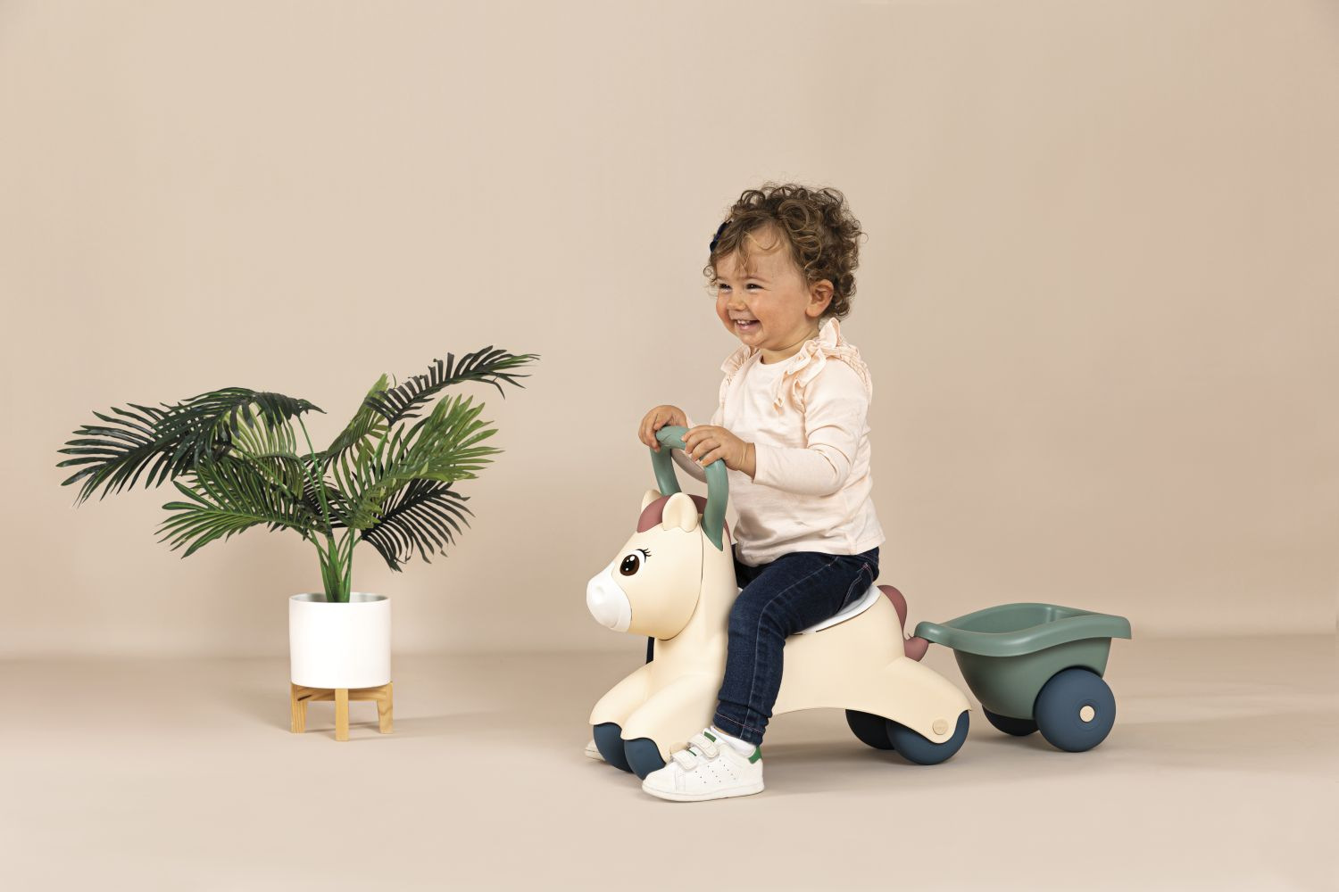 Ergonomické dětské odrážedlo Little Smoby v roztomilém designu poníka. Lehký a obratný. S ergonomickým řízením a rukojetí. Rodičům slouží ergonomická rukojeť i jako praktické madlo na přenášení. Součástí je také kompaktní přívěs. Díky nízké hmotnosti a rozměrům je baby pony lehký a ovladatelný, díky čemuž je ideálním dětským dopravním prostředkem pro děti od 12 měsíců. Rozměry produktu (DxŠxV): 70 x 23 x 43 cm.