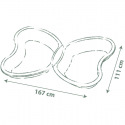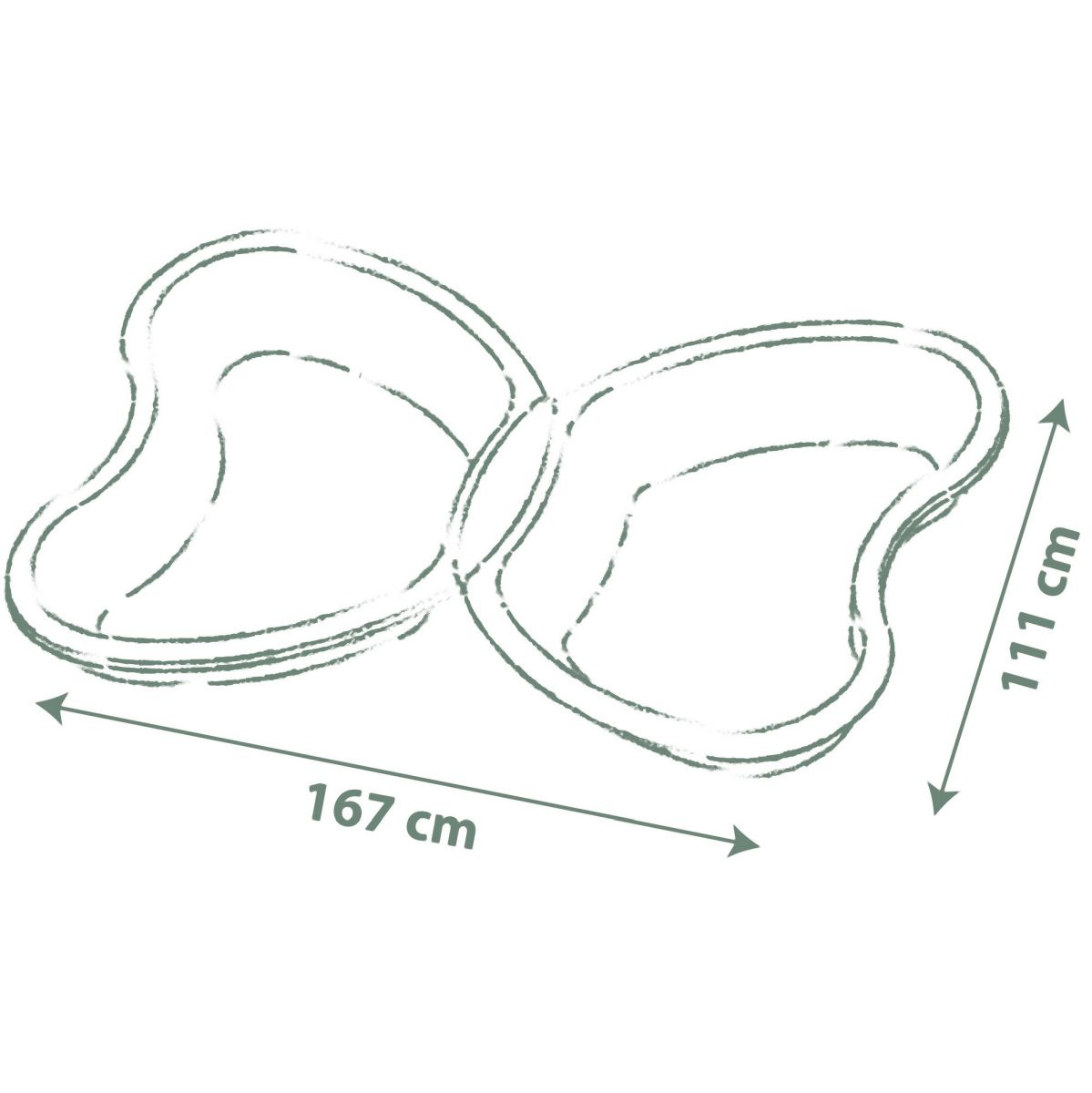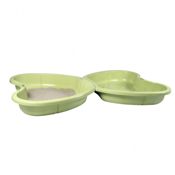 Zelené pískoviště ve tvaru motýla skládající se ze dvou do zebe zapadajících částí. Jedna část může být naplněna pískem a druhá vodou. K vodní trysce v prostřední části může být připojena zahradní hadice. K pohodlnému vypuštění vody z nádoby slouží vypouštecí zátka. Plastové díly jsou ošetřeny anti-UV, což zajišťuje dobrou odolnost a stálost barev v průběhu času. Tento výrobek obsahuje minimálně 96% recyklovaného materiálu. Rozměry rozloženého pískoviště (DxŠxV): 167 x 111 x 18 cm.