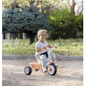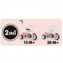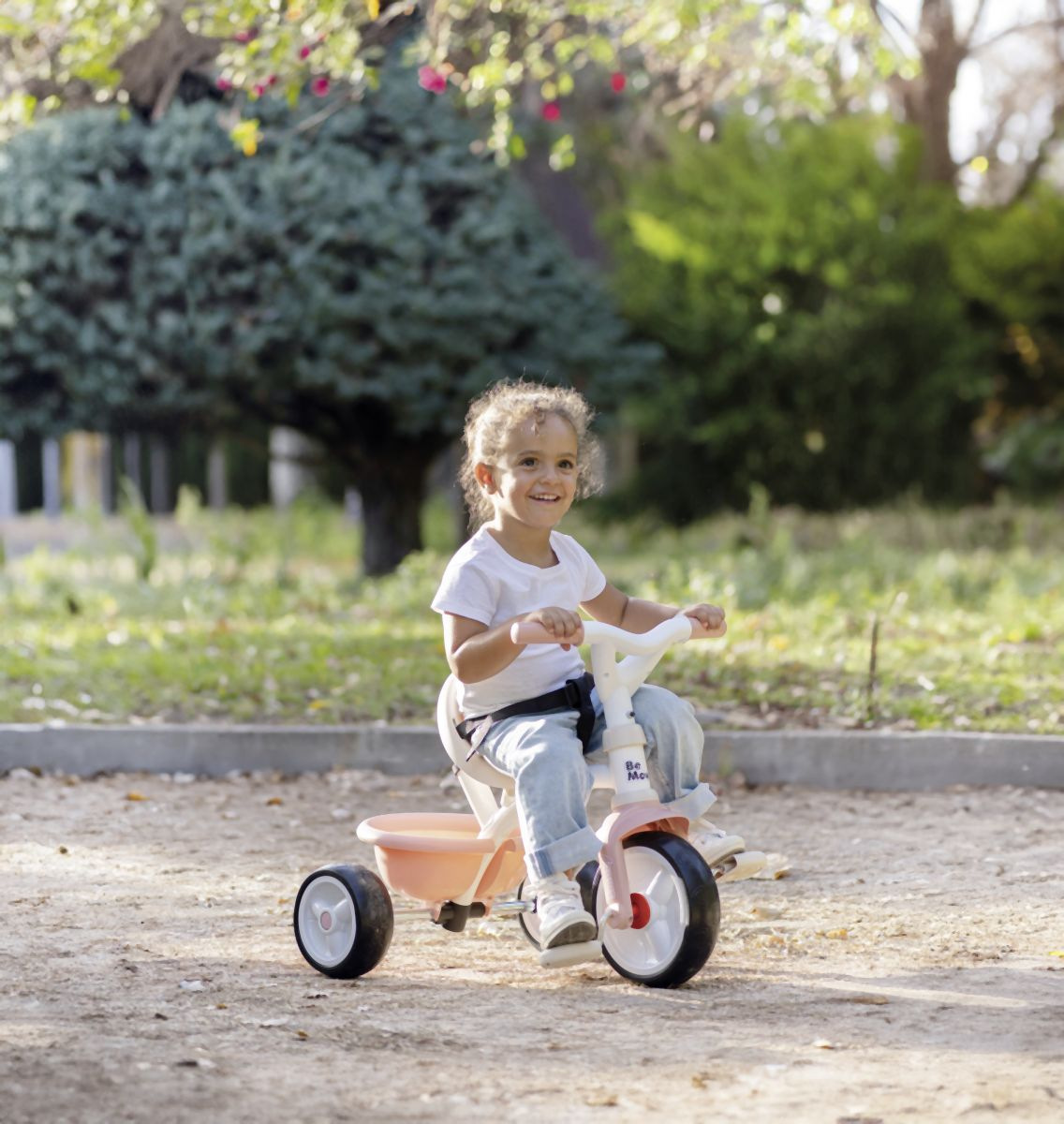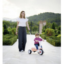 Šlapací tříkolka pro holčičky v růžové barvě má kovový rám, nastavitelnou a odnímatelnou vodící tyč (3 výškové úrovně, max. 95 cm), protiskluzové pedály s možností zablokování šlapání, nastavitelné ergonomické sedadlo na 2 pozice, bezpečnostní pás, výklopný plastový košík a tichá kolečka. Nosnost 50kg. Rozměry: 68 x 52 x 52 cm. Hmotnost: 3,479 kg.