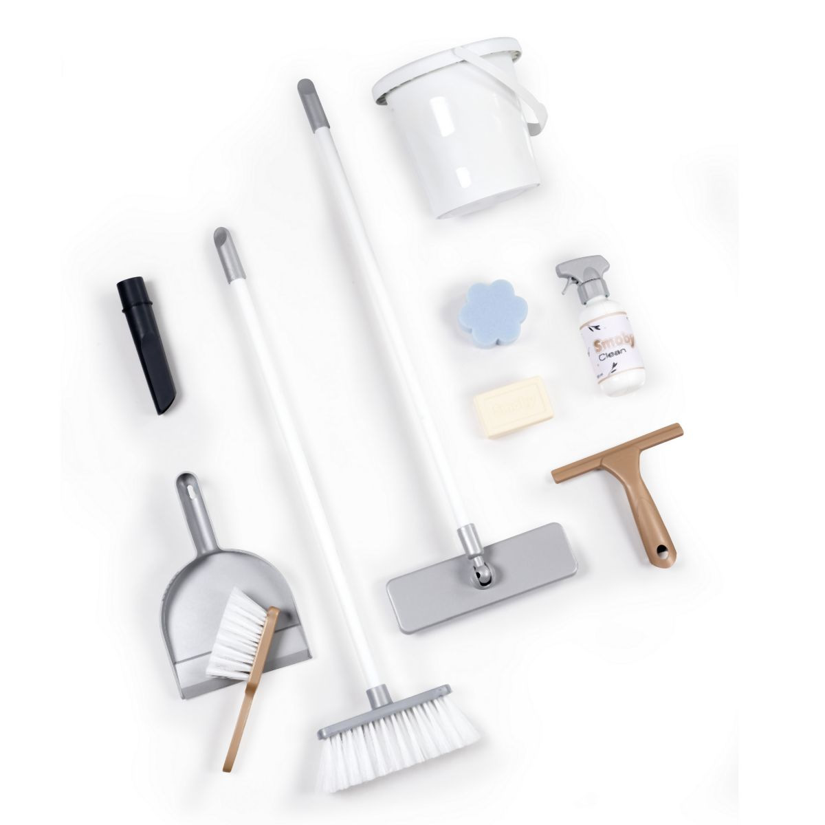 S touto skvělou sadou je úklid velká zábava! S kbelíkem, lahvičkou s čisticím sprejem, lopatkou a zametacím kartáčem je vše, co ti nejmenší potřebují jako pracovité pomocníky při úklidu. Úklidová sada obsahuje kbelík, rozprašovač, čistící hadřík, lopatku, kartáč, houbičku a prachovku. Ideální vzdělávací hračka, která podporuje rozvoj jemné motoriky a zlepšuje jazykové a sociální dovednosti. Sada podporuje imitaci hry v dětech a motivuje je k tomu, aby svůj pokoj udržovaly uklizený a čistý. Všechny díly sady jsou plně funkční a rozprašovač lze naplnit vodou pro čištění povrchů. Veškeré příslušenství najdete v kbelíku a lze jej prakticky uložit až do dalšího úklidu. Balení: 21,5x15x23cm. Věk: 3+