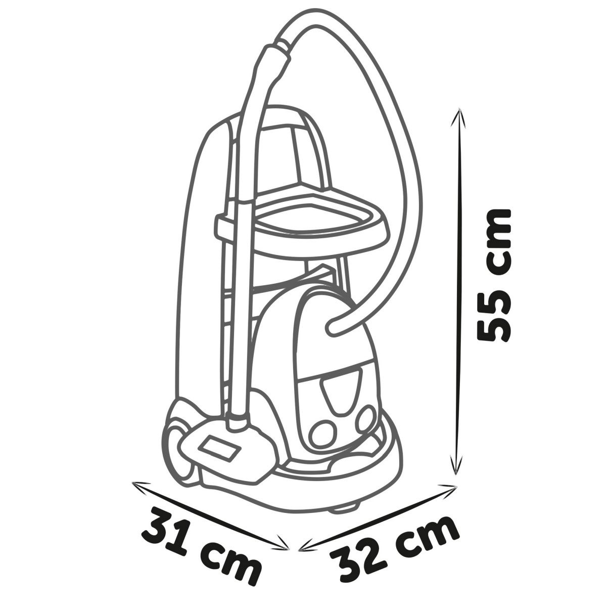 Úklidový vozík s vysavačem Rowenta s příslušenstvím. Dětský vysavač vydává skutečný zvuk vysavače. Díky kompaktní velikosti a nízké hmotnosti je snadno ovladatelný i pro menší děti od 3 let. Další příslušenství k úklidovému vozíku: lopatka a smeták, mop a makety obalů od čisticích prostředků atd. Tento výrobek obsahuje minimálně 71 % recyklovaného materiálu. Rozměry produktu (DxŠxV): 31 x 32 x 55 cm.