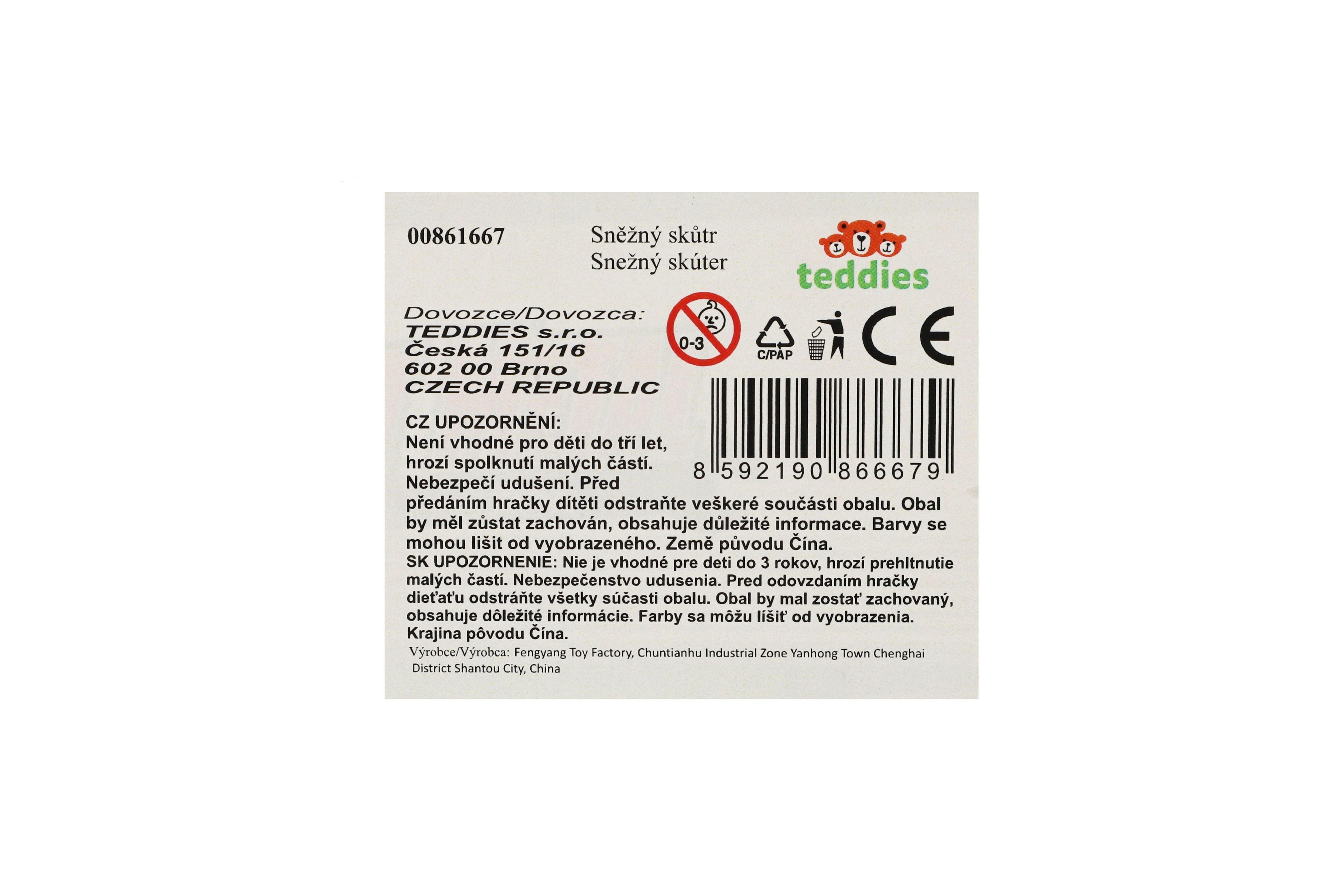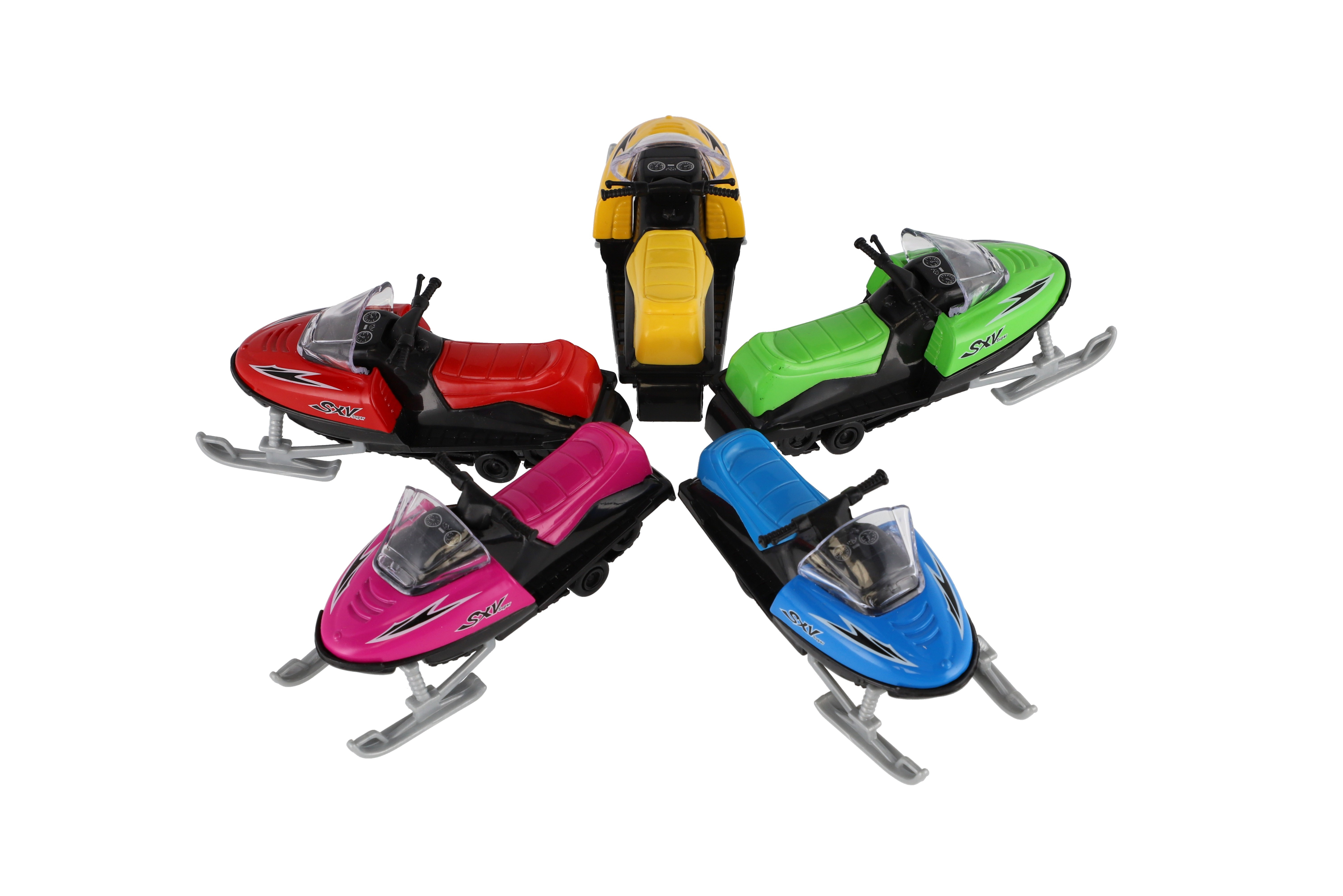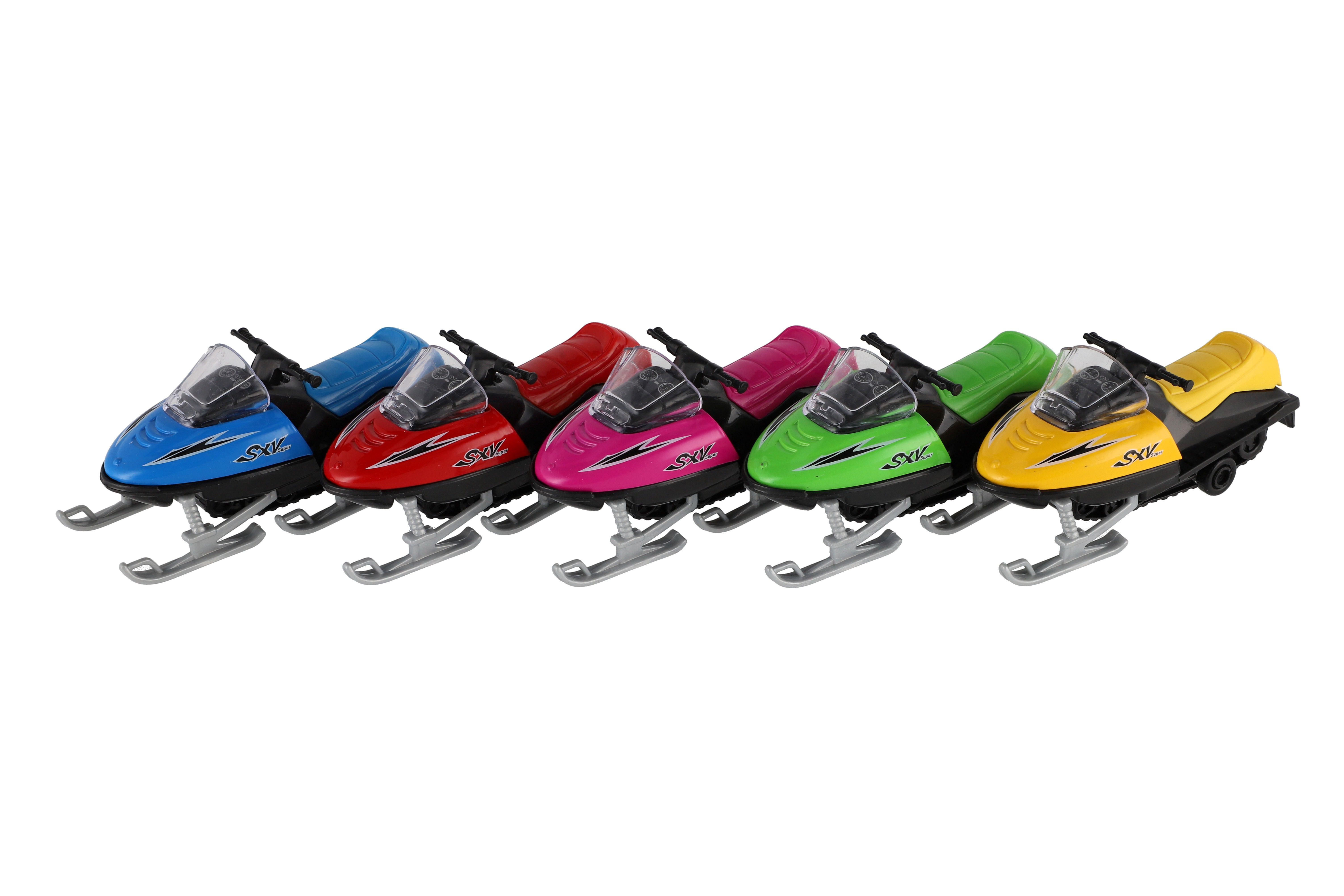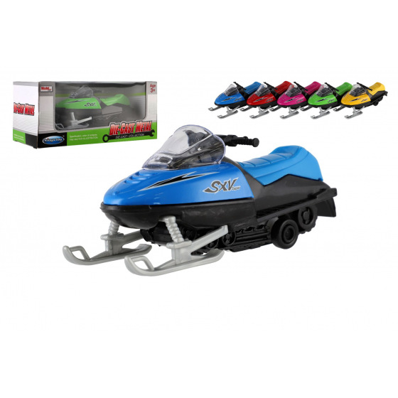 Popis Sněžný skútr kov/plast 13cm na zpětné natažení 5 barev v krabicče 17x8,5x7,5cm
