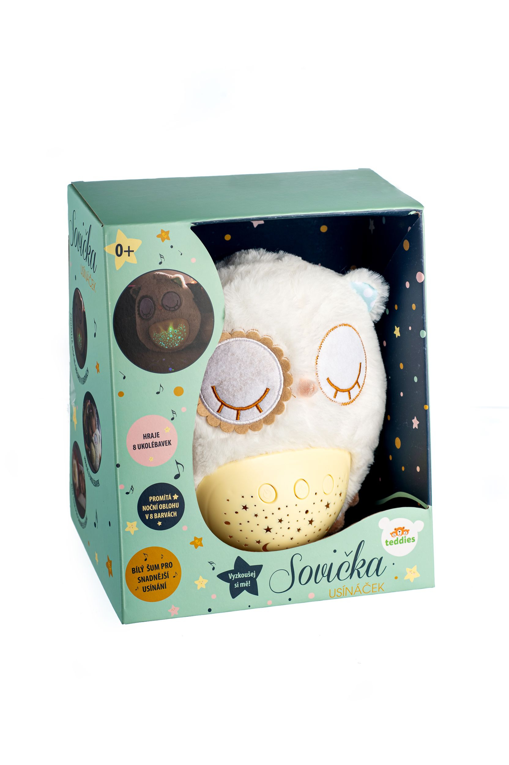 Teddies Sovička Usínáček plyš 25cm na baterie se světlem se zvukem v krabici 22x26x17cm 0m+