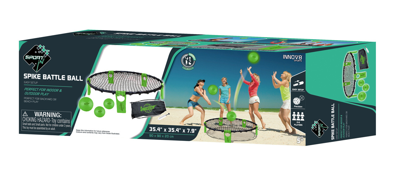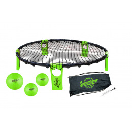 Venkovní dynamická sportovní hra Spikeball je skvělá hra pro2-6 hráčů s jednoduchými pravidly.Cílem je maximálně třetím úderem odrazit míček od trampolínky. Hra se přitom zahajuje podáním, to by nemělo od trampolínky vyskočit výš než natažená ruka spoluhráče. Hrát ovšem můžete jakoukoli částí těla. Míček se od trampolínky musí odrazit mimo ni, pokud by dopadl na ni, je to chyba hráče, který míček tímto způsobem zahrál. Vítězí dvojice, která jako první získá 21 bodů. Se setem Spikeball si užijete skutečně skvělou zábavu. sada obsahuje: 5× nožička | Průměr sítě: 90 cm