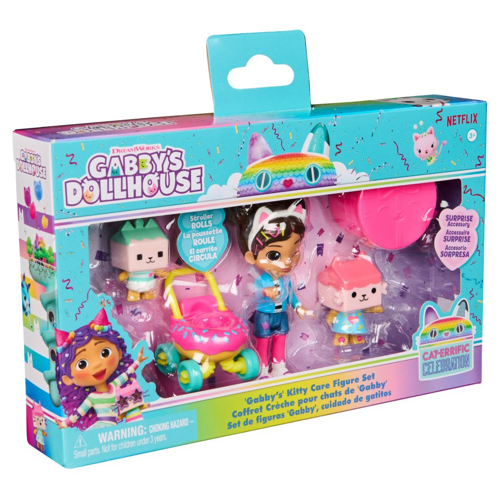 Vstupte do světa Gábinina kouzelného domku se soupravou figurek Jesličky! V této sadě figurek najdete Gábinu, kočičku Krabičku, miminko Krabička Beníček a jeho roztomiloučký dětský kočárek ve tvaru donutu! Každá figurka obsahuje autentické seriálu věrné detaily! Rozbalte si svůj vlastní zásilku z kouzelného domku a odhalte hračku s překvapení v podobě rozkošného medvídka! Pro další překvapení naskenujte QR kód, který je uvnitř zásilky z kouzelného domku, a odemkněte si speciální odměnu v bezplatné aplikaci Gábinin kouzelný domek (k dispozici pro iOS a Android). Hračky Gábinin kouzelný domek pro dívky a chlapce jsou skvělými dárky pro všechny děti, které jsou fanoušky tohoto seriálového hitu od Netflixu a rádi si hrají s domečky pro panenky. Zajistěte jim nezapomenutelný zážitek se světem roztomilých figurek, doplňků a nábytku do kouzelného domku, které mohou sbírat a libovolně skládat! Postavte si vlastní svět se základními stavebnicemi, jako je kuchyňka na hraní nebo hudební místnost, a spoustou sběratelských předmětů, jako je úžasná výletní loď, bazén pro mořské panny nebo zbrusu nová souprava Párty pokoj – podkroví kouzelného domku s krytým skateparkem a roztomiloučkými balkónky s mini antistresovými hračkami, které poskytují uspokojivou senzorickou hru a lze je bezproblémově zkombinovat s oběma verzemi kouzelného domku!