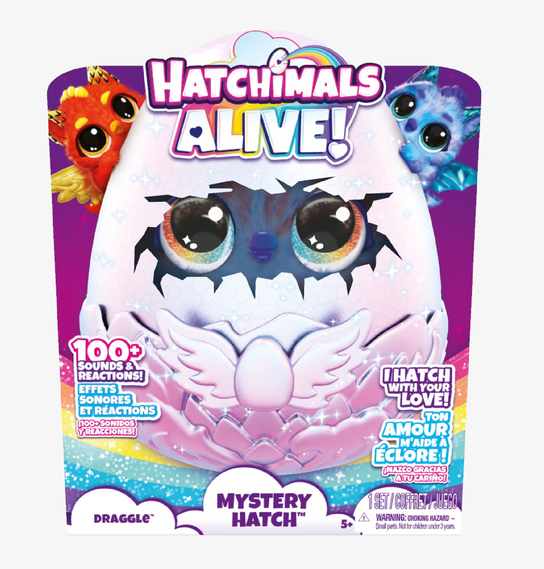 Blíží se něco magického. Je to Hatchimals Líhnoucí se interaktivní zvířátko, které potřebuje vaši lásku, aby se mohlo vylíhnout. Líhnutí Hatchimals je skutečně vzrušujícím zážitkem, doplněným o mlhu, světelné efekty a více než 100 zvuků a reakcí. Prostě je musíte mít! Kdo se vám vylíhne? Bude to překvapení! Uvnitř každého vajíčka Hatchimals Líhnoucí se interaktivní zvířátko se nachází 1 ze 2 postaviček. Podpořte svoji postavičku v líhnutí se na svět tím, že se s vajíčkem budete mazlit, ťukat na něj a zvedat a kolébat ho – vajíčko svítí a houpe se, a dokonce uslyšíte, jak vám váš Hatchimal zevnitř odpovídá. Až vajíčku dáte dostatek lásky, přijde čas na to svolat rodinu a přátele a připravit se na dokonalý zážitek z líhnutí. Objeví se magická mlha a vajíčko se rozzáří duhovými barvami – napětí roste. Po vylíhnutí vás bude váš nový kamarád inspirovat k hrám plným fantazie. Samou láskou si přiveďte k životu svou vlastní postavičku Hatchimal z řady Hatchimals Líhnoucí se interaktivní zvířátka. Obsahuje: 1 Hatchimals, 1 Hatchi-Wings, 1 stručný návod, 1 návod k použití, 4 baterie AA.