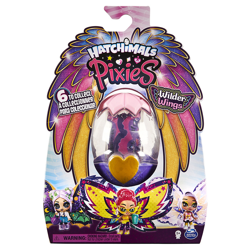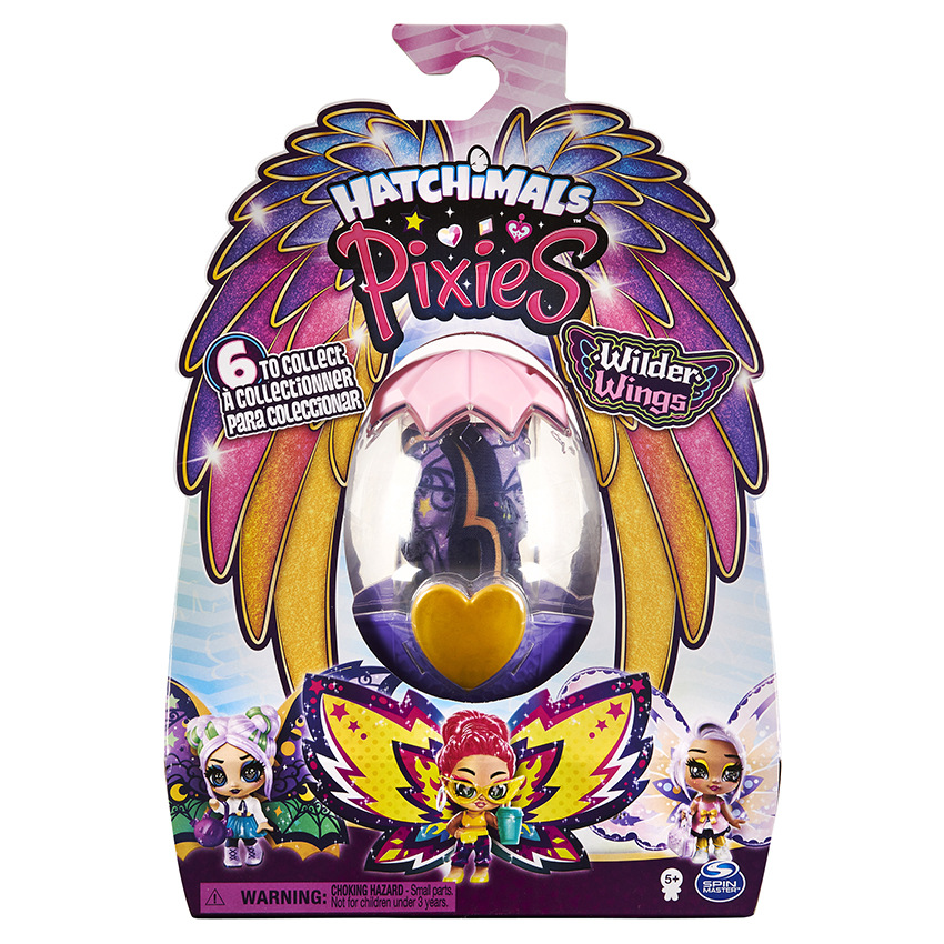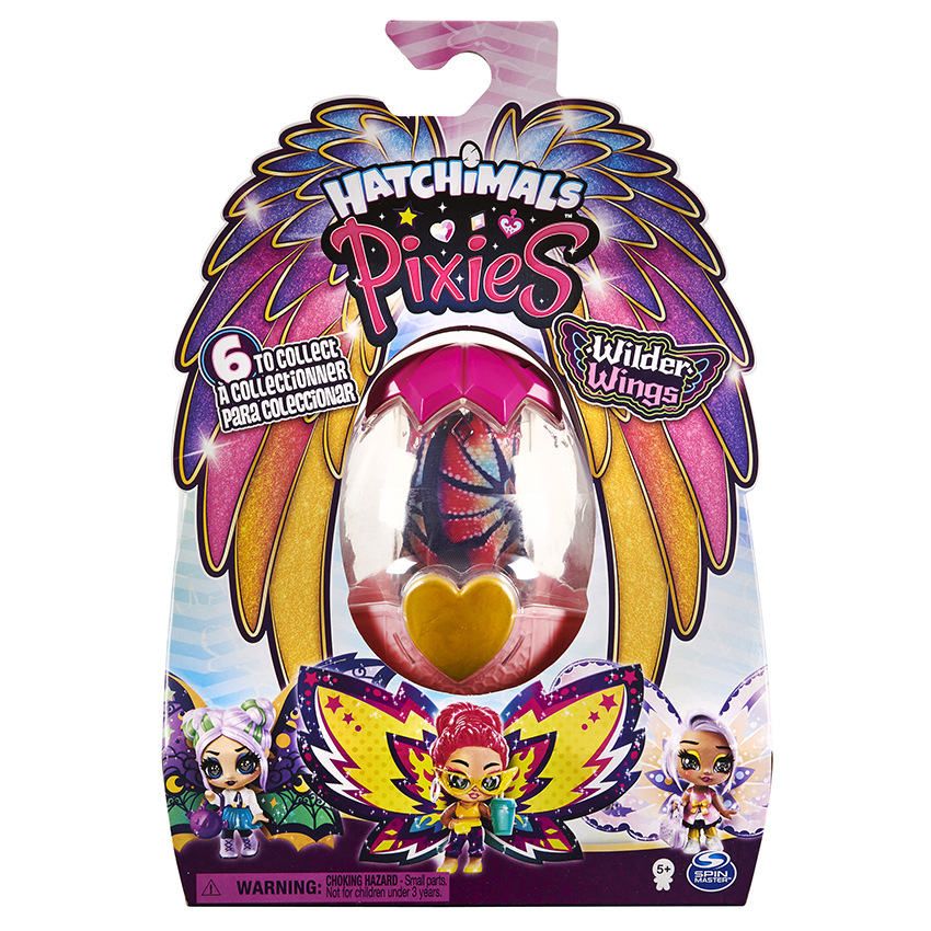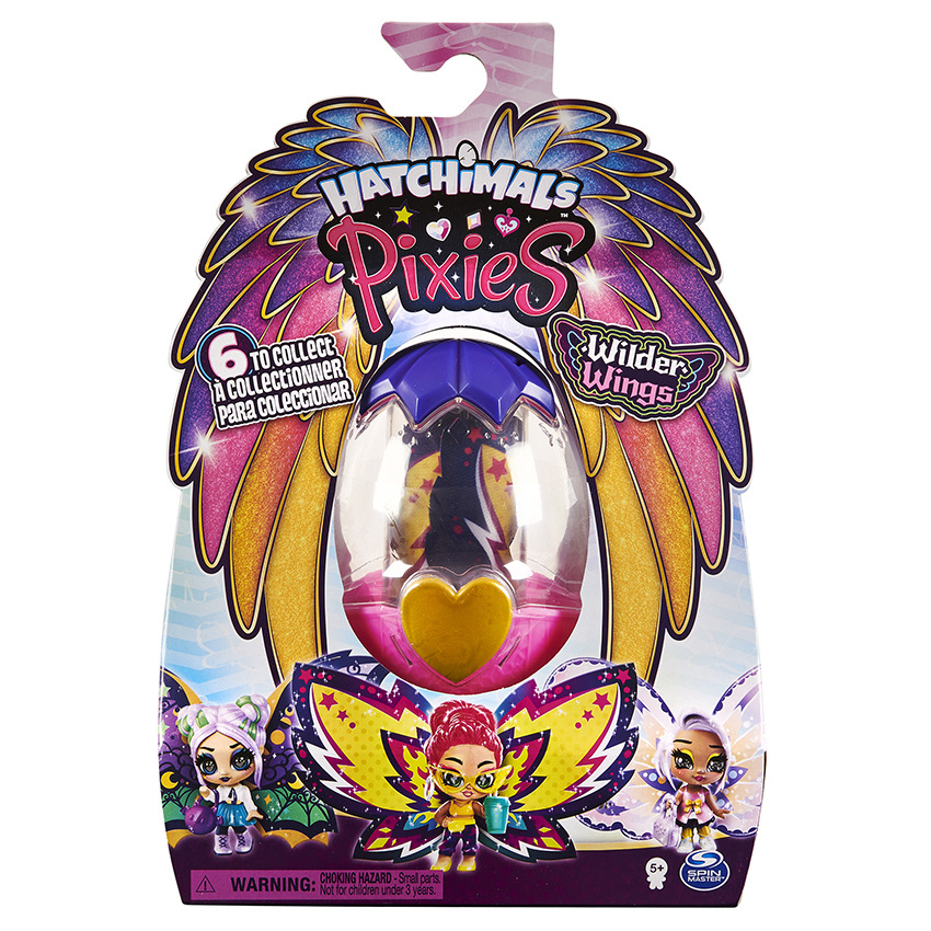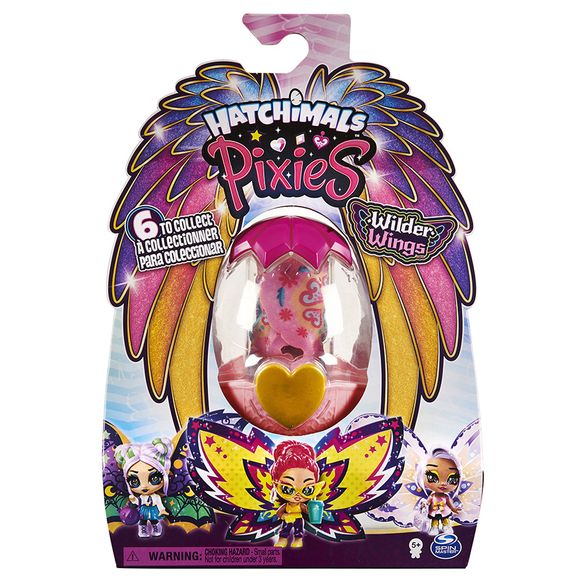Objev nejdivočejší Hatchimals víly Pixies s těmi nejkrásnějšími křídly. Hatchtopií se prohnala třpytková bouře a Pixies i Hatchimals teď mají divoká křídla. Každá z těchto super stylových Pixies má vlastní jedinečná nádherná látková křídla s výraznými vzory a speciální novinku. Každá z víl má jiný vzhled, dva tématické doplňky a nový design vajíčka, z něhož se líhne. Díky průhlednému obalu vajíčka získáš nápovědu, jaký styl Pixie je uvnitř – je zabalená v jejích nádherných křídlech. Pro vylíhnutí postavičky promáčkni srdce na přední straně vajíčka a odstraň jeho horní část. Když horní část vajíčka odstraníš, křídla se rozevřou a odhalí tvou dokonalou Vílu Pixie. Navíc máš šanci objevit bonus v podobě zářivého prstene pro tebe. Prsten je v 1 z 10 vajíček. Vybav svou nejdivočejší Pixie super roztomilými doplňky, jako jsou trendy sluneční brýle a kabelka. Pixies mají pohyblivou hlavu, stylové outfity, které ladí s jejich velkými křídly a třpytivými účesy. Jsou všechny tak krásné. Vystav svou Pixie uvnitř vajíčka nebo poskládej její křída, zase ji zavři do vajíčka a pak ji znovu a znovu odhaluj. Můžeš si ji dokonce vzít s sebou na stylové cesty. Na svém kontrolním seznamu najdeš také kód Hatchtopia Life, který můžeš využít v bezplatné aplikaci (kompatibilní se zařízeními iOS a Android). Přidej všech šest nejdivočejších Hatchimals Pixies (každá prodávána samostatně) do své sbírky a užij si spoustu divoké zábavy.