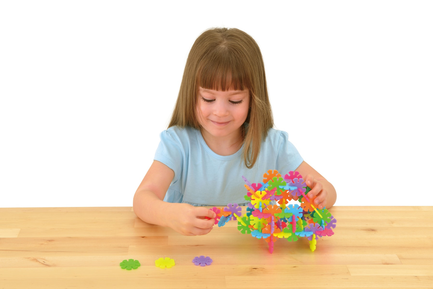 Barevná stavebnice z kytiček rozvíjející jemnou motoriku, tvořivost, fantazii a kombinační myšlení.