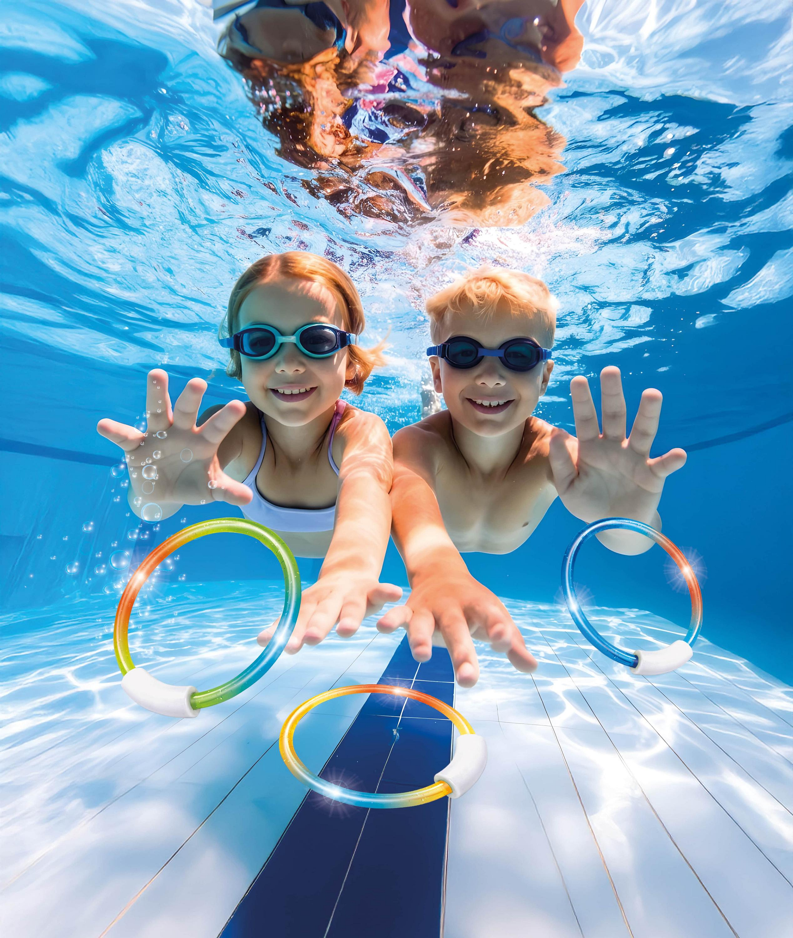 SPORTO Svítící kroužky na potápění – Rozsviťte svou dráhu Zábava, která stojí pevně na dně! Tato sada svítících kroužků promění váš bazén v interaktivní herní zónu. Díky speciálnímu vyvážení kroužky po vhození klesnou ke dnu. Kroužky jsou na jedné straně zatížené tak, aby se na dně nepřevrhly.