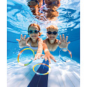 Trénink hrou: Prohazování kroužků nebo jejich lovení ze dna přirozeně rozvíjí kapacitu plic, koordinaci pohybů a odvahu pod hladinou.