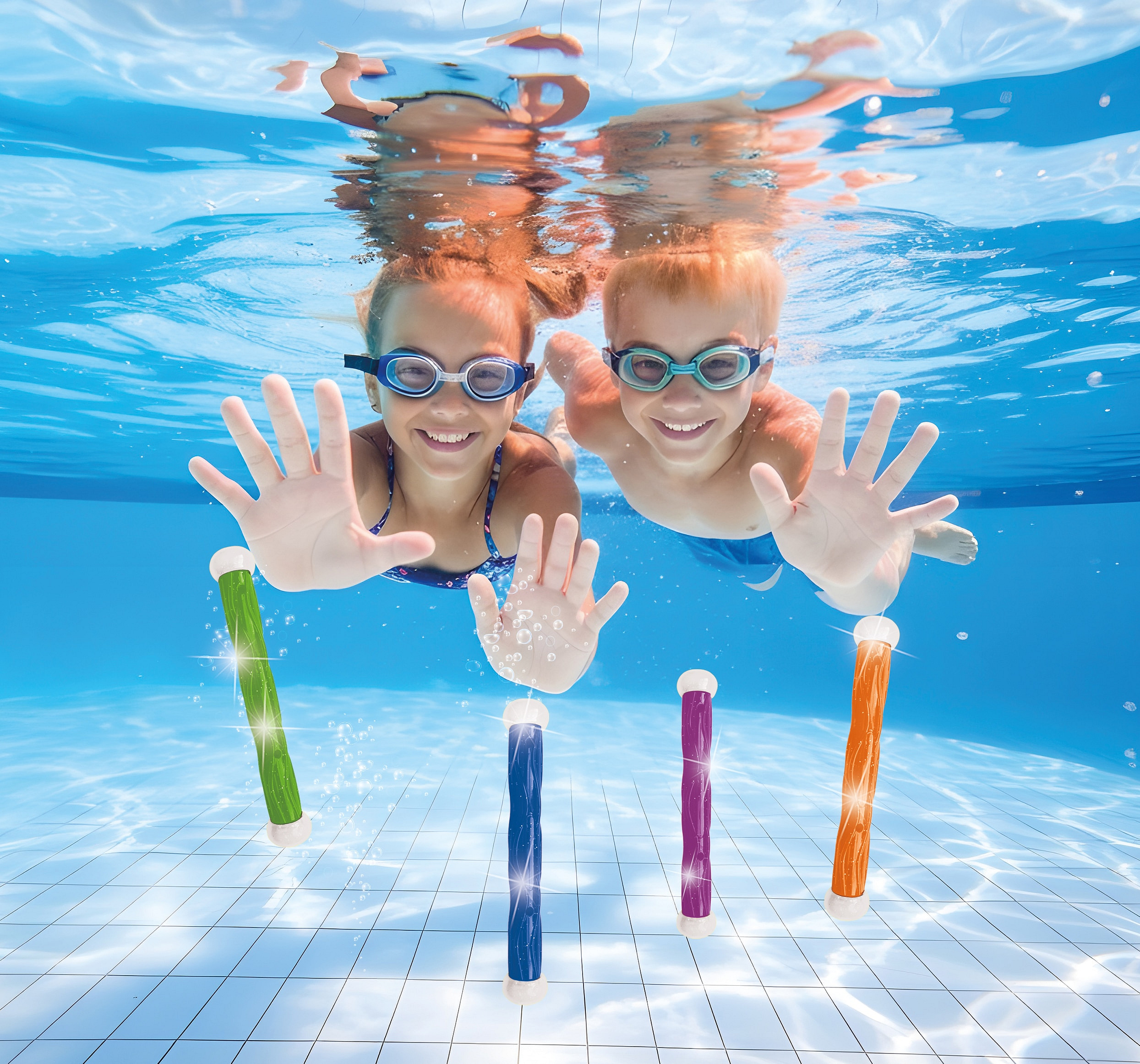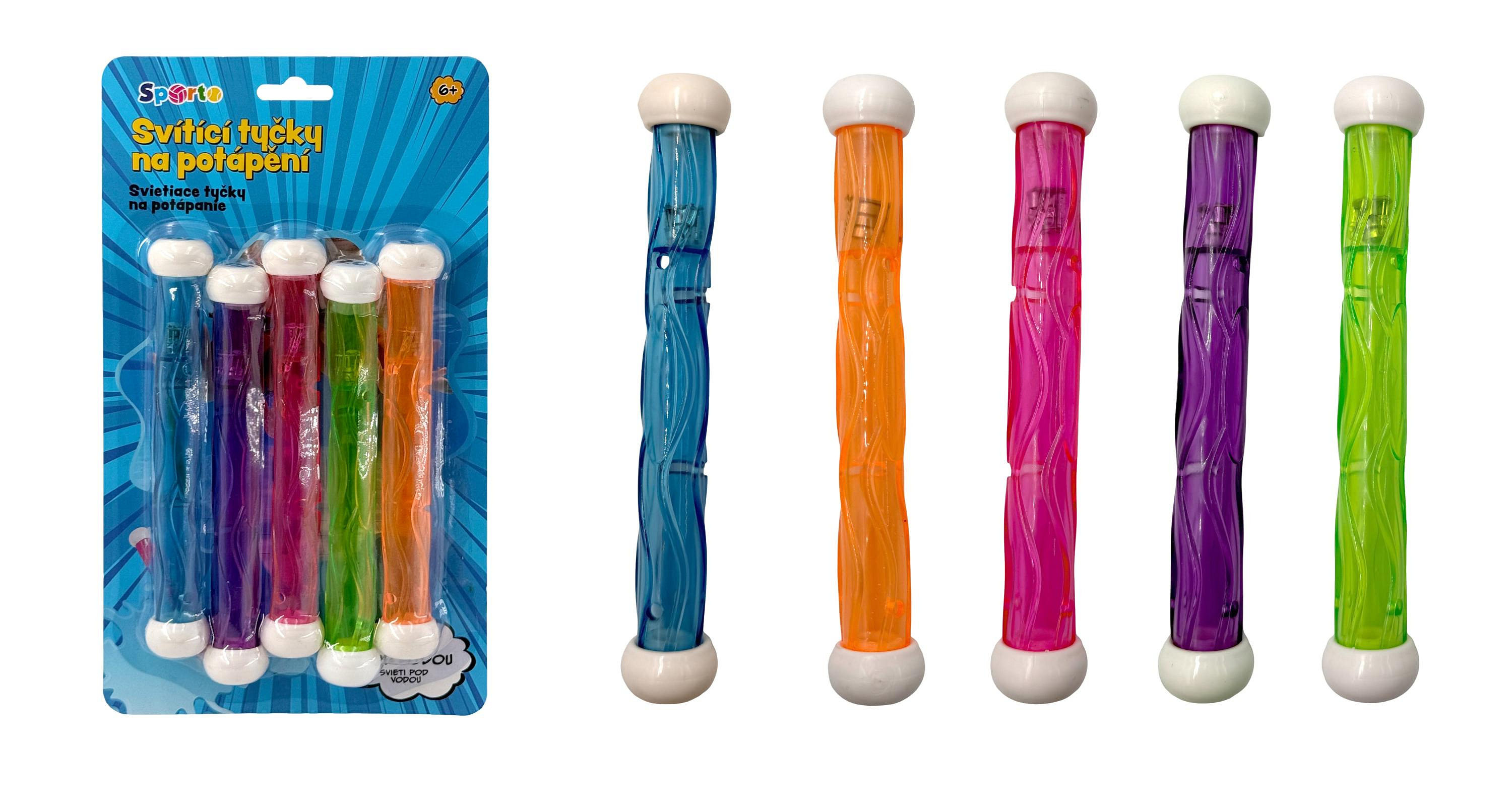 SPORTO Svítící tyčky na potápění Rozsviťte dno svého bazénu! Se svítícími tyčkami SPORTO se potápění stává magickou hrou, která nekončí ani po západu slunce. Tyto speciální tyčky po vhození do vody klesají ke dnu a lákají malé i velké potápěče k jejich vylovení.