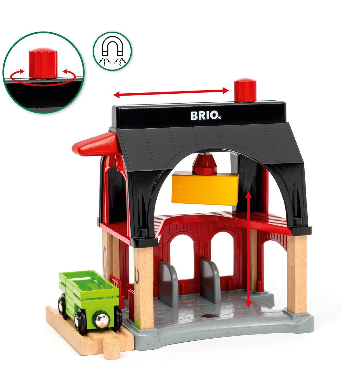 Pomocí silného ramene naložíte snado a bezpečně svůj náklad do vagónku nebo nákladního vozu. Tento set je výborným doplňkem k ostatním vláčkodráhám Brio.