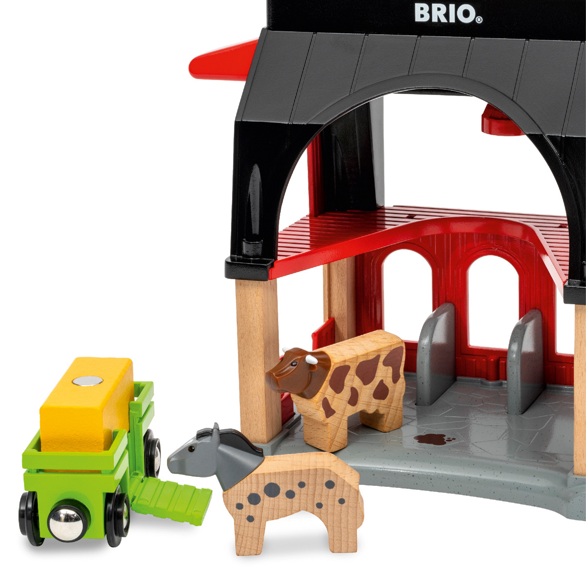 Zvířecí stáj BRIO World s vozem na seno je krásným domovem pro všechna zvířata. Je pro ně dostatek místa ve stodole i pro jejich krmení v seníku. Krmivo pro zvířata lze bezpečně naložit z vozu do stáje pomocí funkce nakládání sena na střeše stáje. Vůz lze také použít k přepravě zvířat po celém světě BRIO. Balení: 39x22x27cm. Věk: 3+