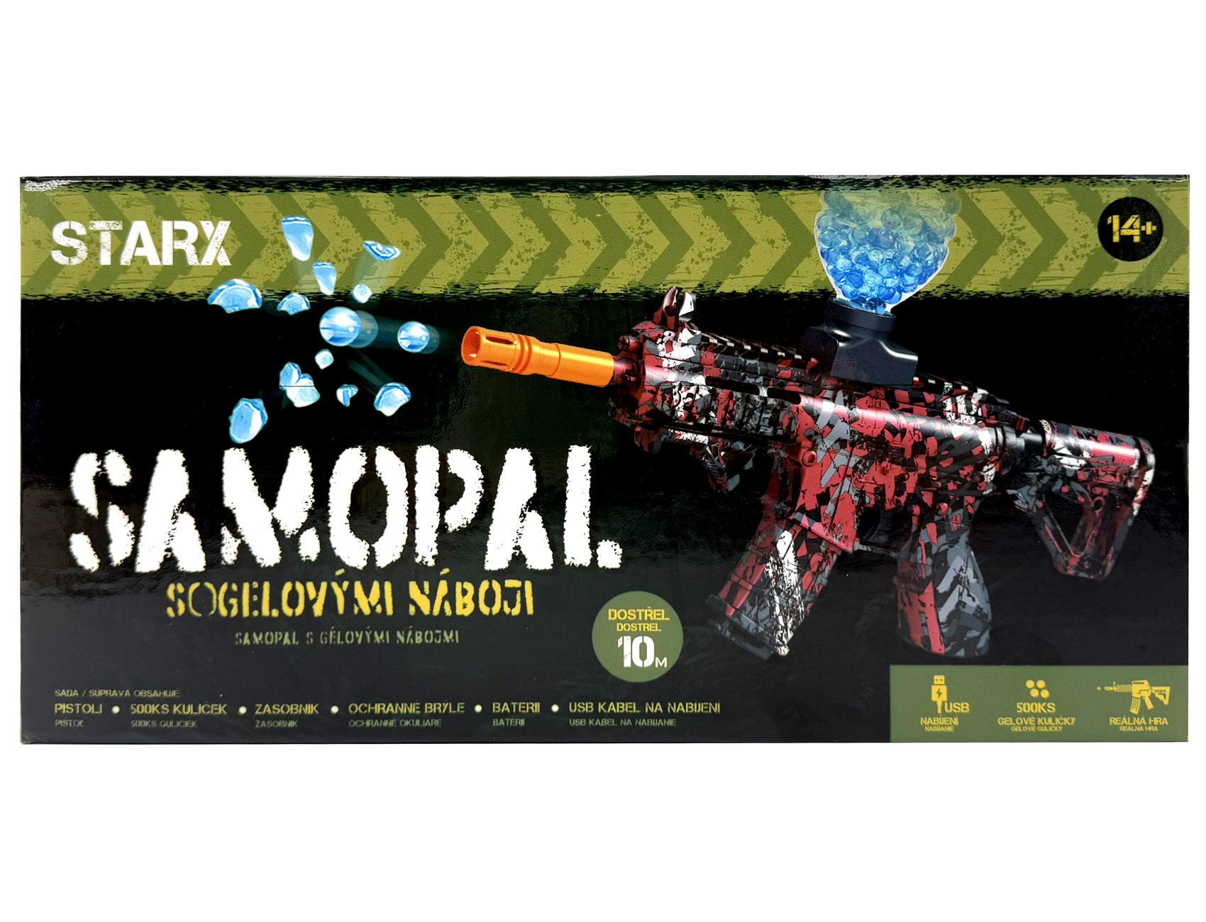 Samopal na gelové kuličky je hračka určená pro kluky od 14ti let, která střílí speciální gelové kuličky. Tyto kuličky jsou vyrobeny z polymeru, který absorbuje vodu, a po namočení nabobtnají do velikosti několika milimetrů.