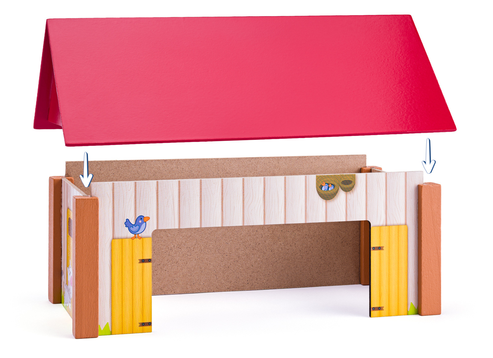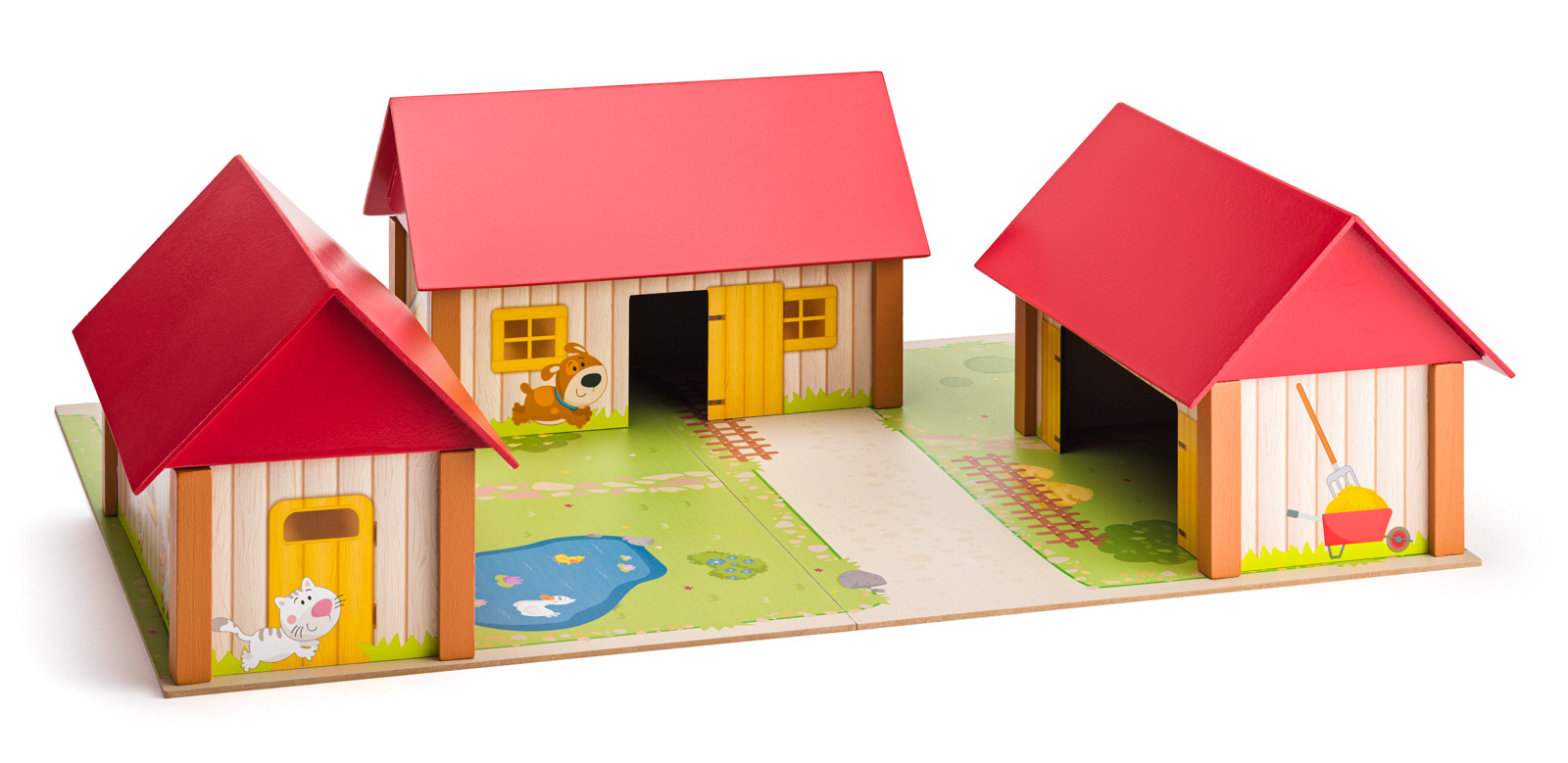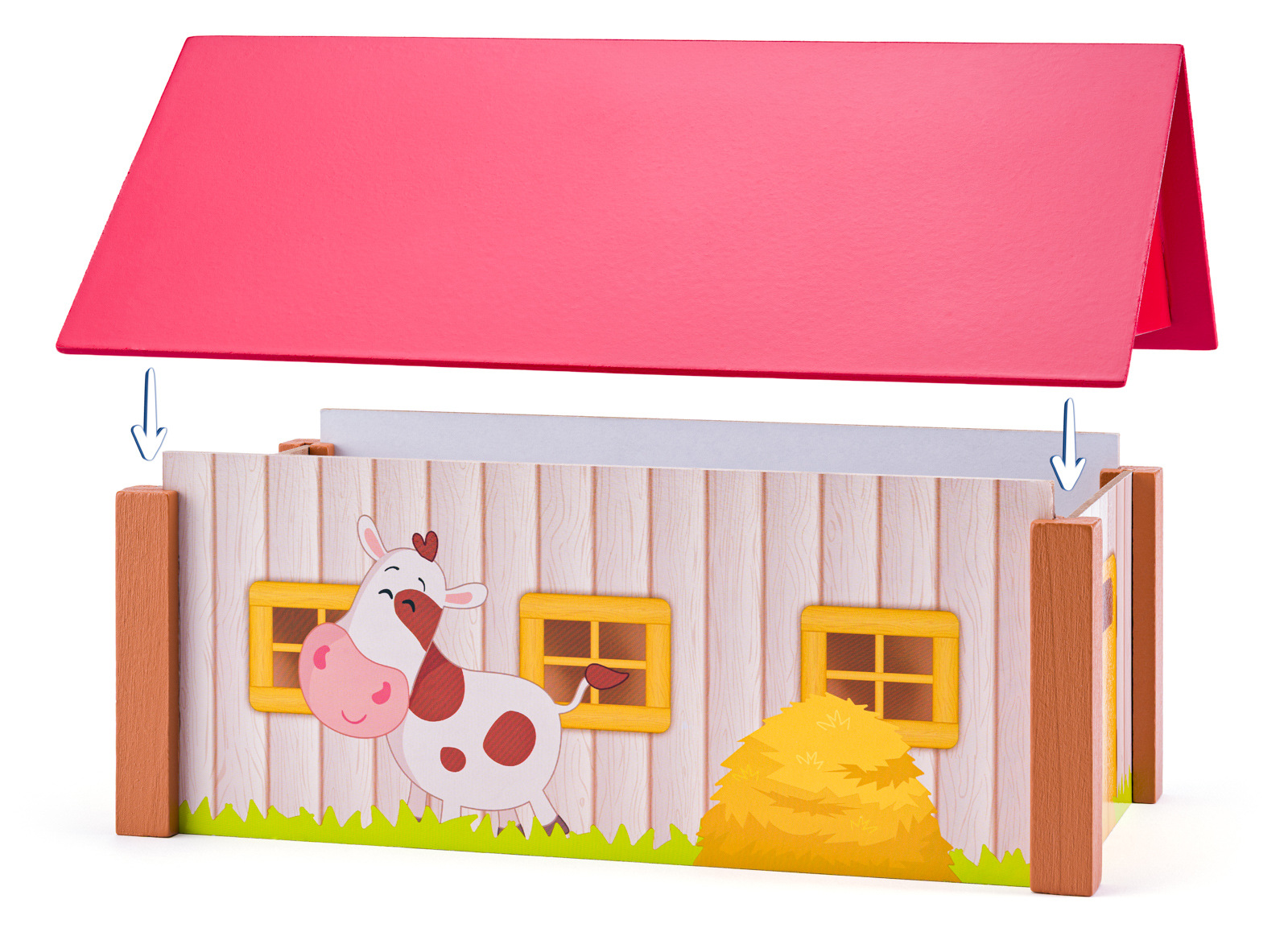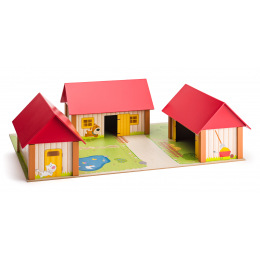 Tento krásný dřevěný statek potěší všechny malé milovníky zvířat a venkovského života. Sada obsahuje tři domky se snímatelnou střechou a hrací desku složenou ze dvou částí, které společně vytvářejí pestrou farmu plnou života. Ilustrace od české autorky s motivy zvířat, statku a přírody podněcují dětskou fantazii a vybízejí ke kreativnímu hraní. Domečky jsou vyrobeny z kvalitního dřeva a papíru, jemně zaoblené hrany a pestré barvy zaručují bezpečnost i dlouhou životnost hračky. Tato sada vytváří dokonalé prostředí pro hraní s figurkami. Rozměry domečku se střechou: 16,5 x 27 x 16 cm. Rozměry hrací plochy: 60 x 44 cm. Rozměry balení: 33 x 45 x 15 cm. Věk: 3+
