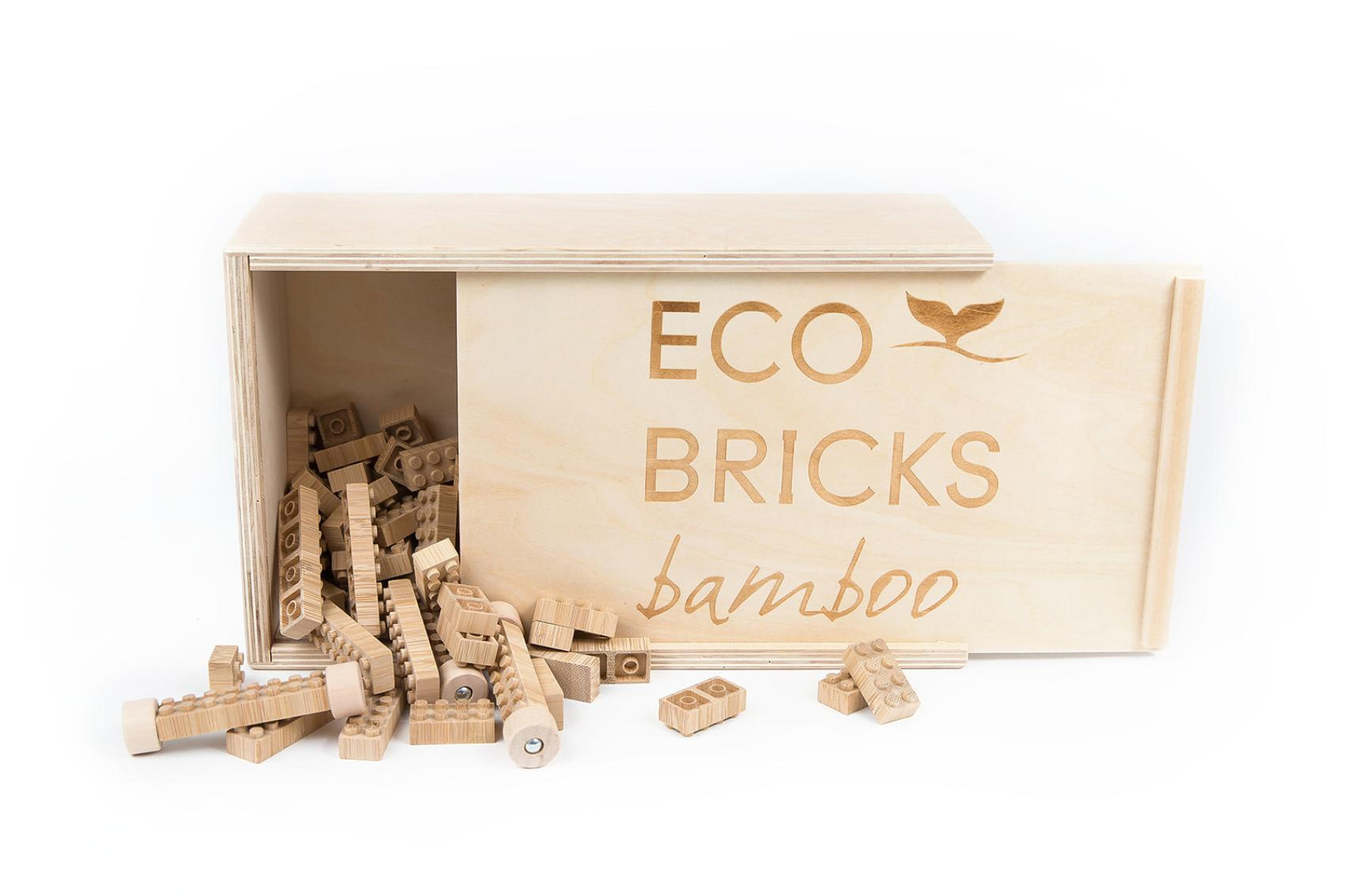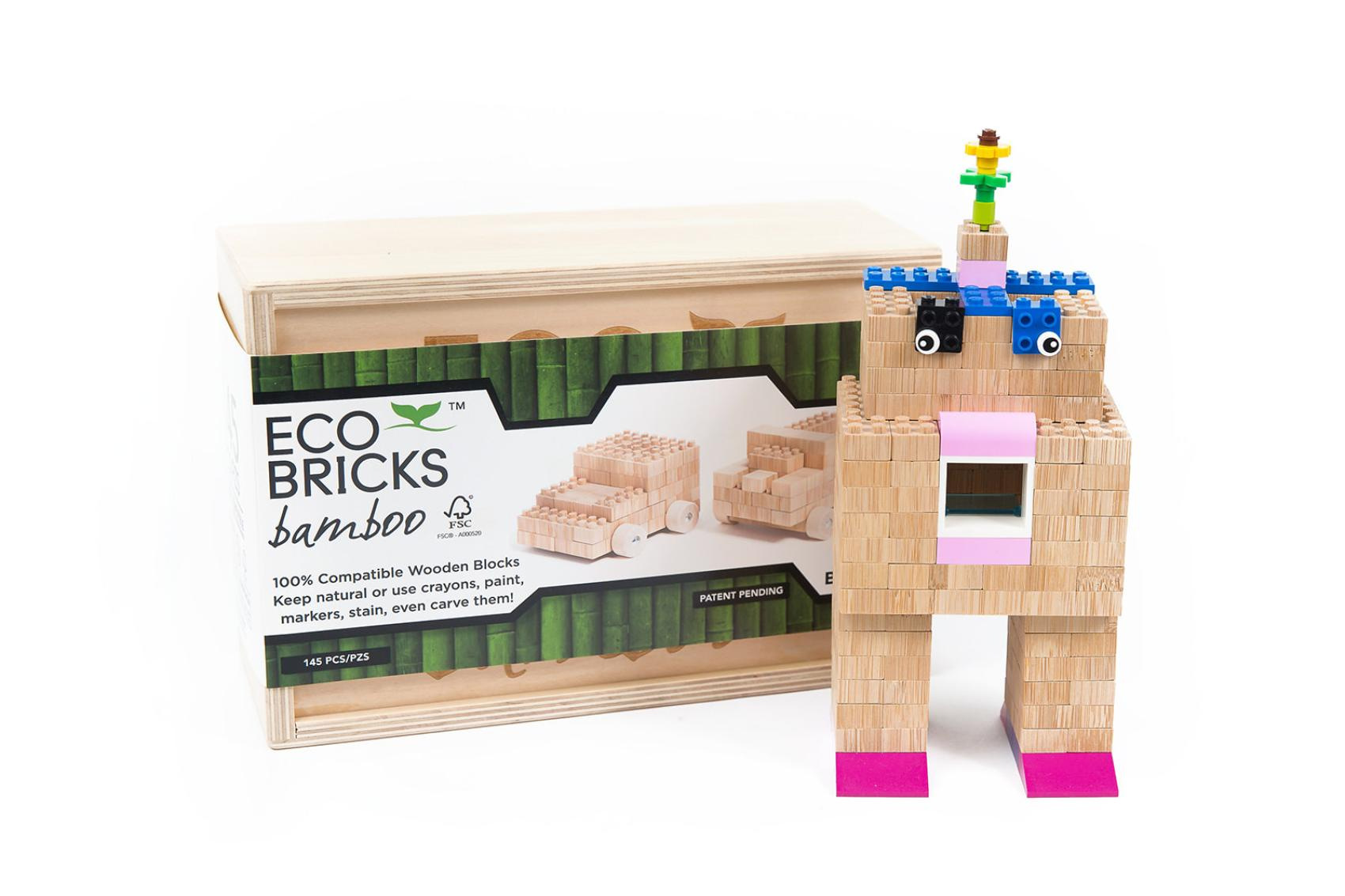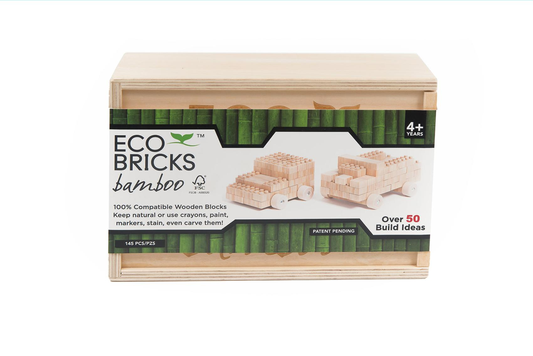 Popis Stavebnice dřevěná 145ks ECO Bricks v dřevěné krabičce 25x9,5x17cm