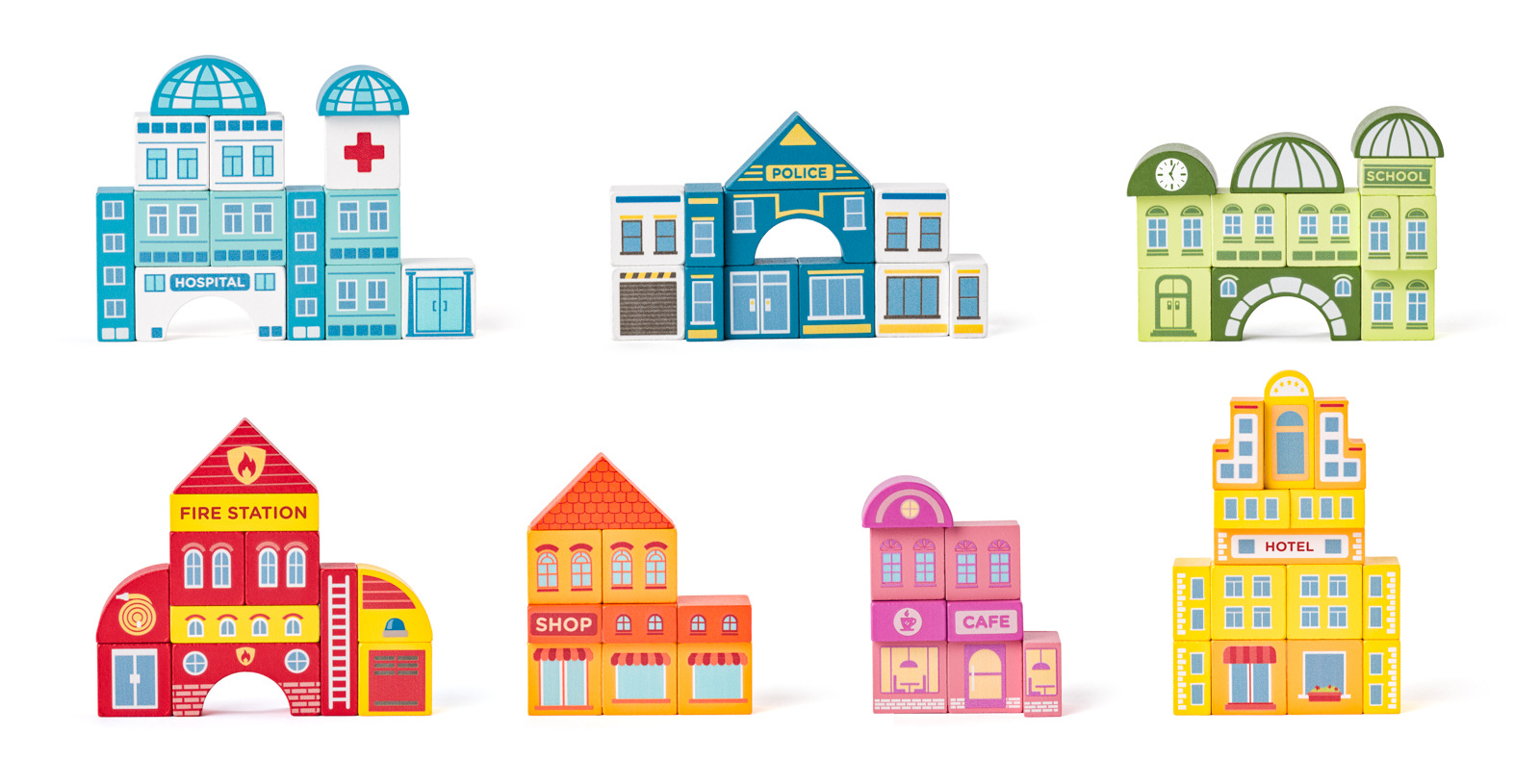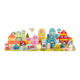 Otevři kyblík plný barevných dřevěných kostek v jedinečném designu české výtvarnice a postav si vlastní město plné života! Vytvoř požární a policejní stanici, nemocnici, školu, kavárnu i obchod. Nech ulicemi projíždět auta, vrtulník kroužit nad městem a plnit své úkoly. Podkladová deska z puzzle dílů dotvoří dokonalou scénu pro tvé příběhy!| Věk: 3+ | Rozměr čtvercového dílu: 3x3x2 cm| Kyblík: 22,5 x 22 cm| Počet dílů: 115