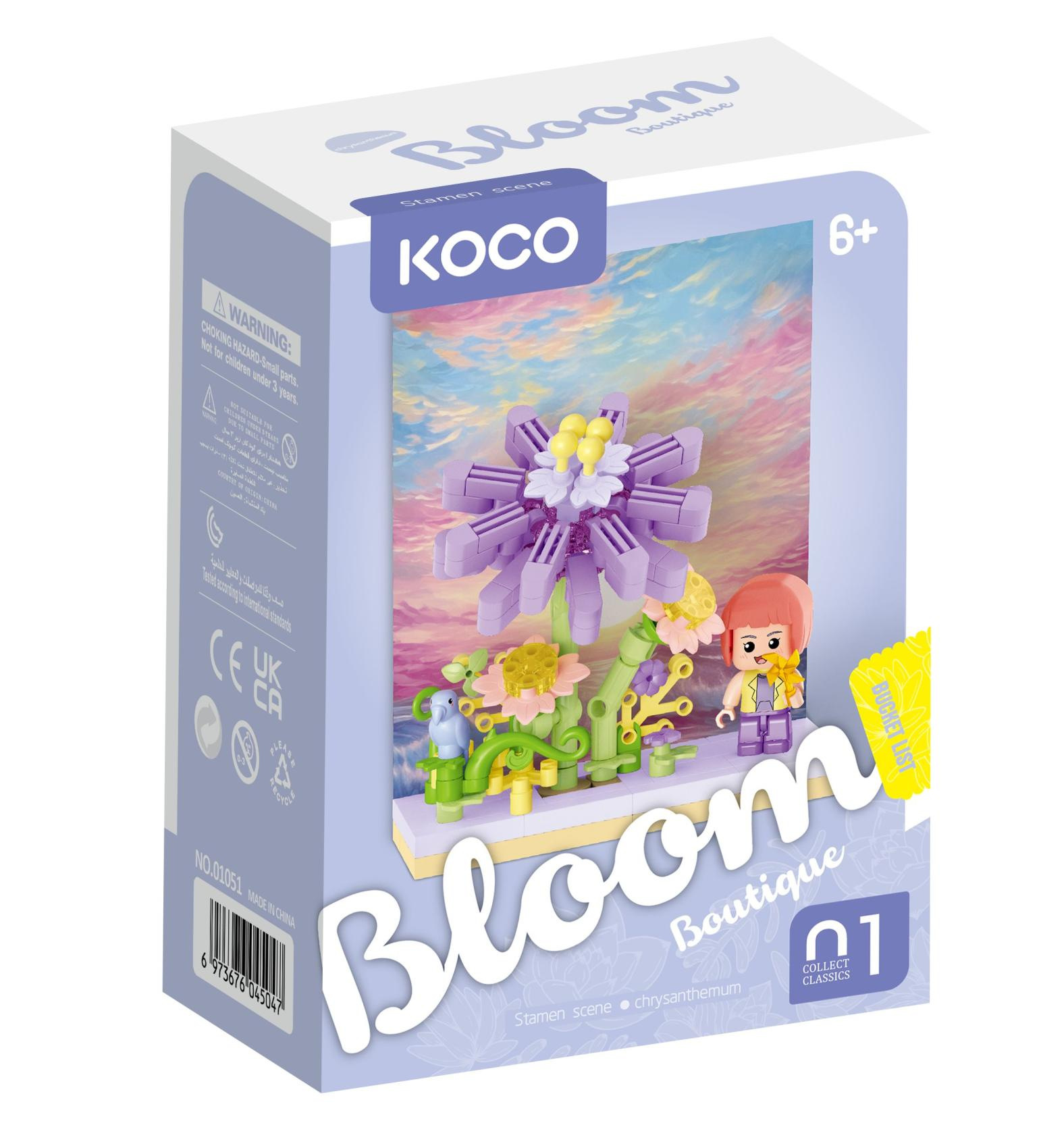 Popis Stavebnice mini KOCO Květinová scenérie plast 6 druhů v krabičce 10x14x6cm 6ks v boxu