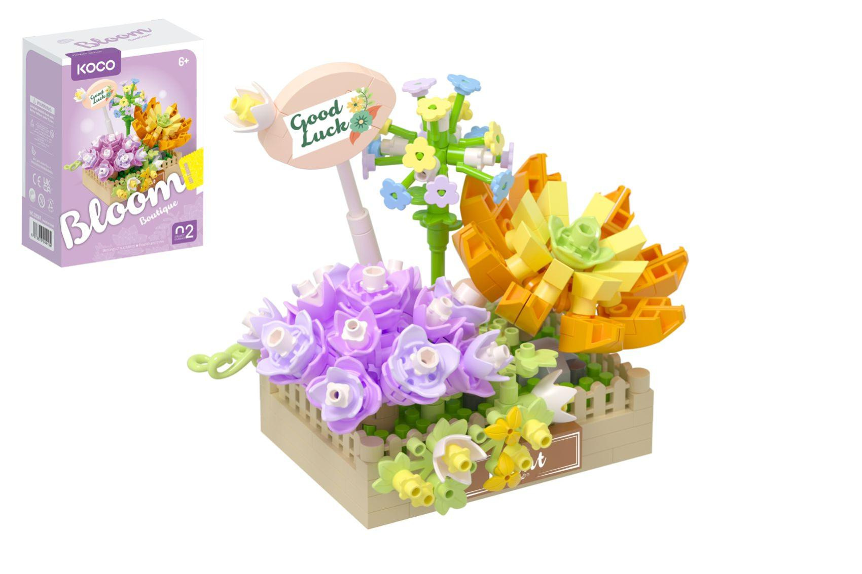 Popis Stavebnice mini KOCO Květinové aranžmá sukulentů plast 295 dílků v krabičce 11x15x6cm