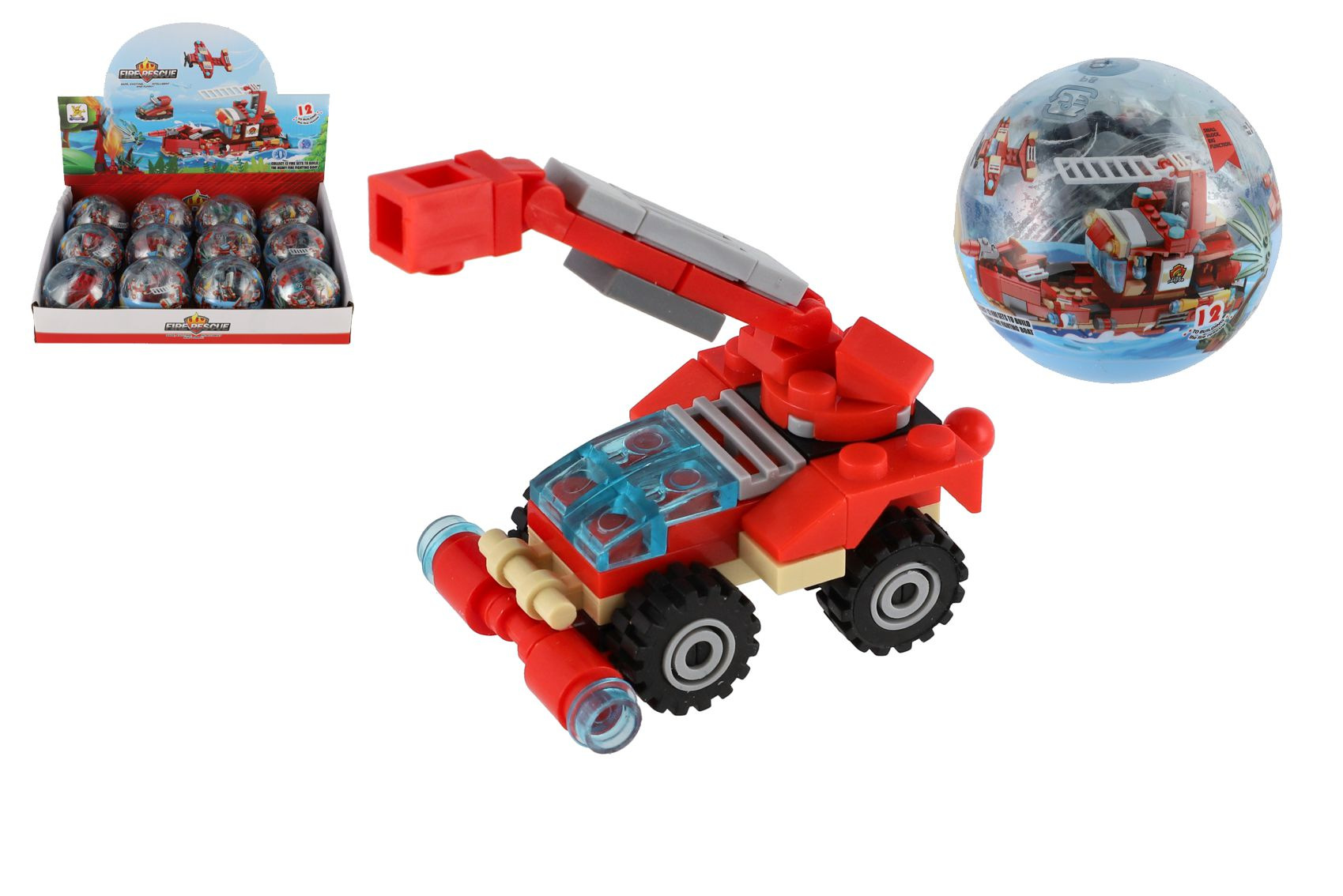 Teddies Stavebnice zásahová vozidla hasiči plast 7cm mix druhů v plastové kouli