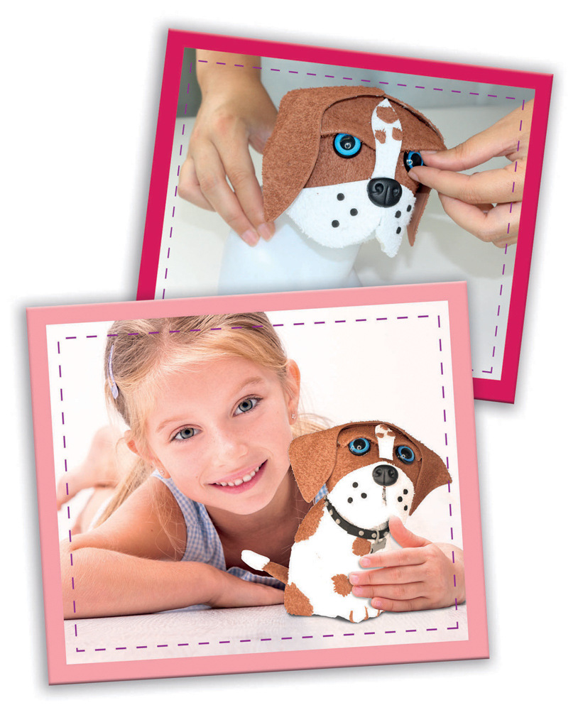 Vytvořte si svého mazlíčka štěňátko s jeho příslušenstvím.Výroba je velmi snadná a bezpečná a vše co potřebujete najdete v krabici. Základ tvoří plastové tělo, které jednoduše spojíte. Potom už kompletujete vše dle postupu v návodu. Sada obsahuje7 listů materiálu EVA (ethylen vinyl acetát), oboustrannou lepící pásku, vzory, plastový čumáček a oči a návod. Vhodné pro: 6+. Video: https://www.youtube.com/watch?v=azsFHHru1no