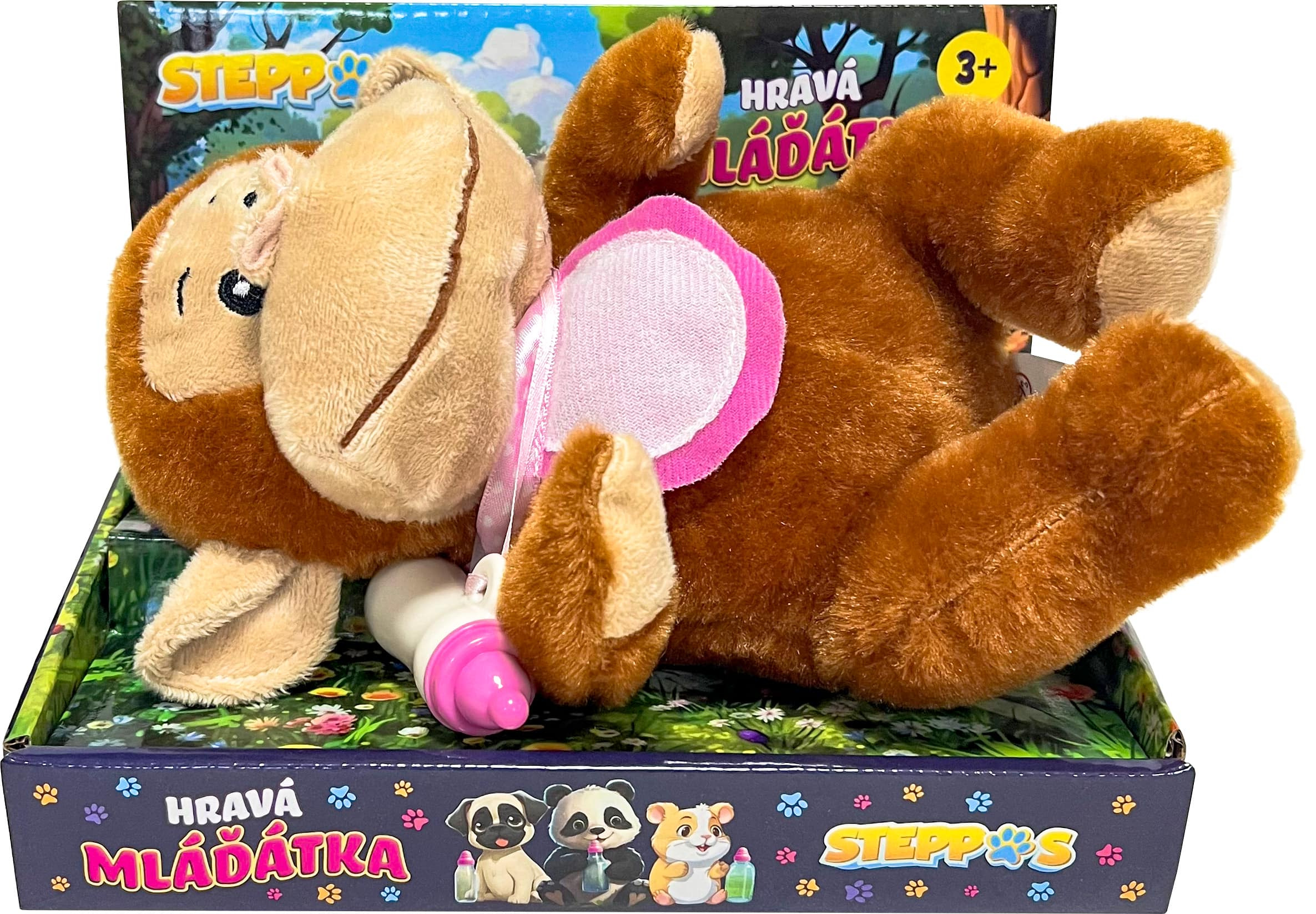 Přiložte láhev s mlékem k tlamě, ozve se zvuk pití.Vyjměte láhev s mlékem, ozve se roztomilý zvuk.