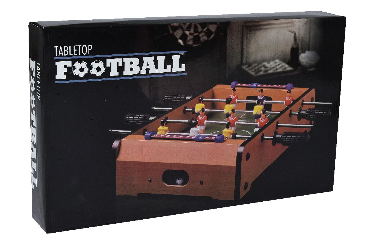 Tento menší stolní fotbálek je určen pro zábavu a trénuje motoriku a koordinaci rukou a očí! Vybavený 6 figurkami na každé straně určitě hráče nadchne skvělými souboji na stole! Hračka je vyrobena z barevného a lakovaného dřeva. Fotbálek je vybaven počítadly gólů a je dodáván včetně 2 míčků.
