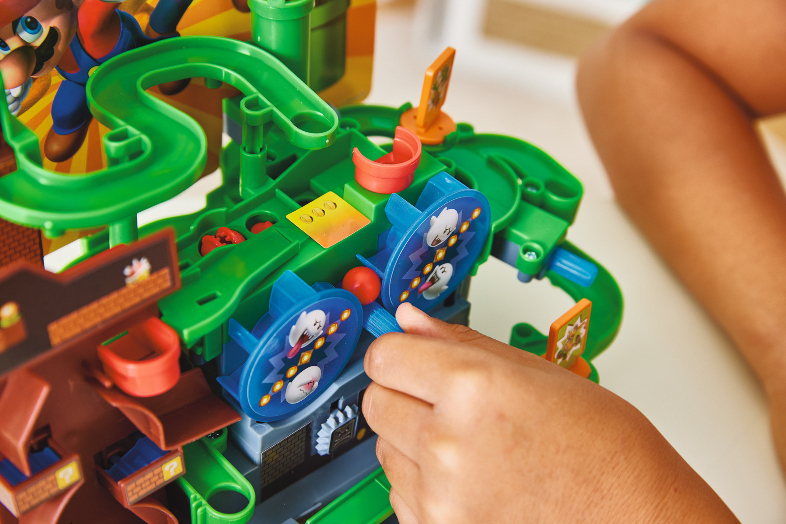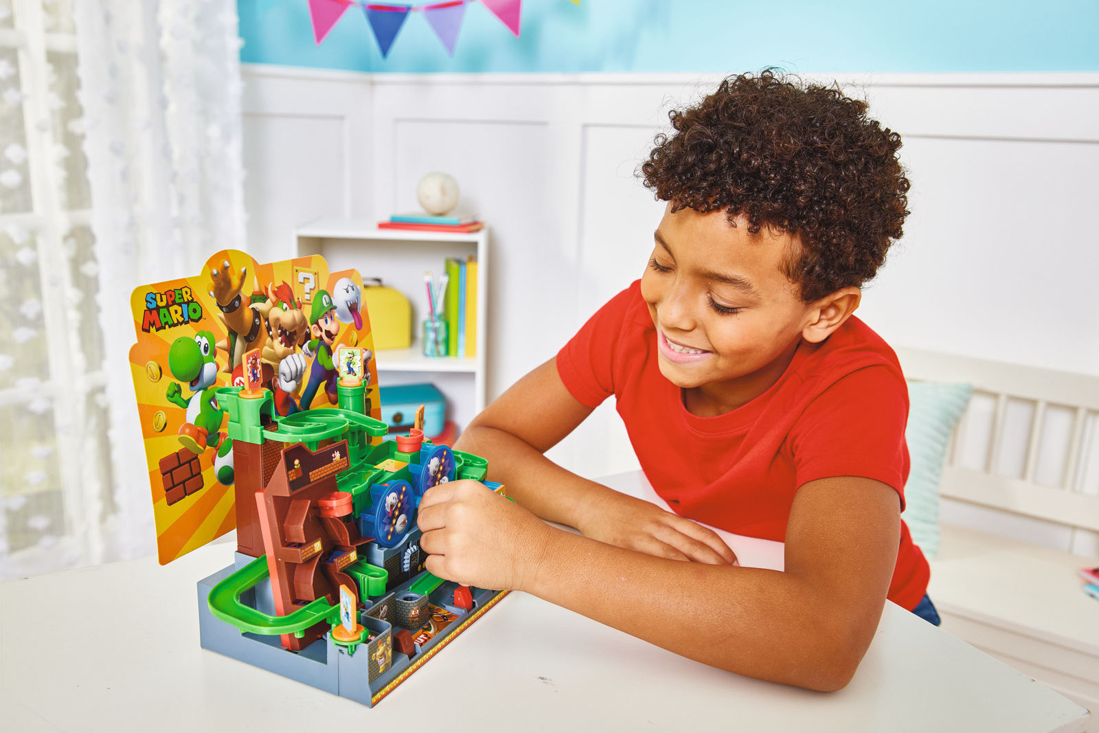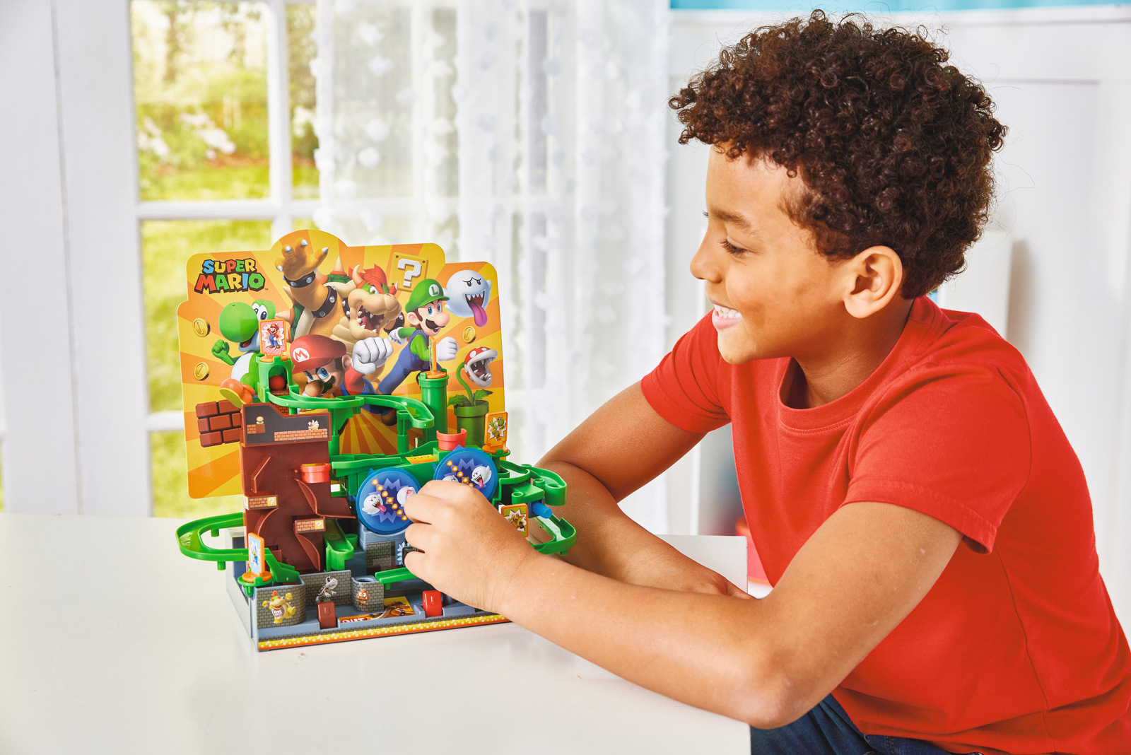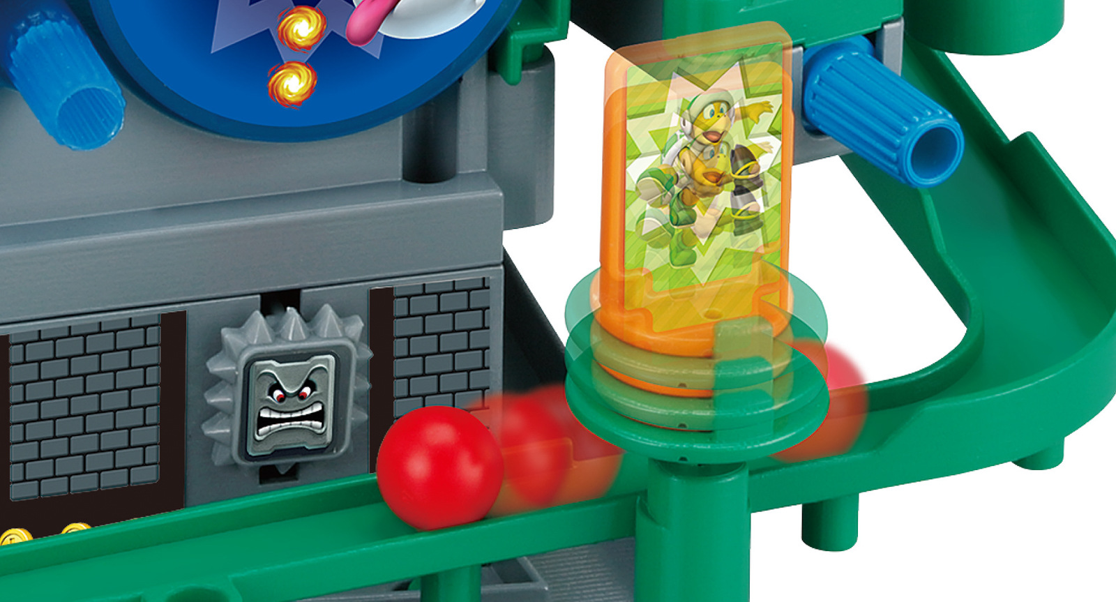 Vzrušující akční bludiště navržené a inspirované světem Super Mario! Opatrně doručte svou hrací kuličku pomocí 3 tlačítek a 2 otočných koleček procházejících 7 složitými patry, abyste dosáhli cíle! Spousta triků a pohybů bez baterie díky pohyblivým překážkám. Skvělá volba pro dárky k narozeninám a svátku! Pro 1 hráče a více. Propojovací systém vám umožňuje libovolně vyměňovat stojánek s ostatními postavami z EPOCH Games a vytvářet si svůj vlastní herní zážitek.LINK SYSTEM (prodává se samostatně)! Věk: 5+ Velikost balení: Š30 x H15 x 26,5 cm