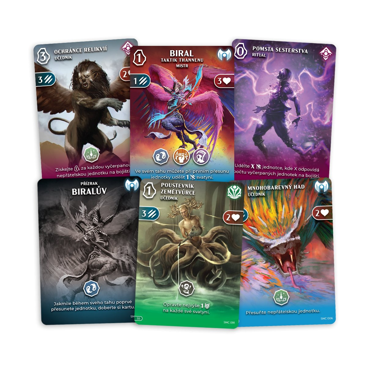 UČEDNÍCI jsou vojáci a bytosti, které povoláváte na bitevní pole, aby útočili a bránili svatyně. Mnozí z nich mají také zvláštní schopnosti. MISTŘI představují nejmocnější postavy každé frakce. RITUÁLY mohou způsobit přímé poškození, narušit nepřátelskou formaci nebo umožnit strategické manévry. SVATYNĚ představují ohniskové body pro směrování magické energie. Jakmile se zprostí omezení svých schopností, jejich moc se projeví na celém bojišti. Zničení všech nepřátelských svatyní je podmínkou vítězství ve hře.
