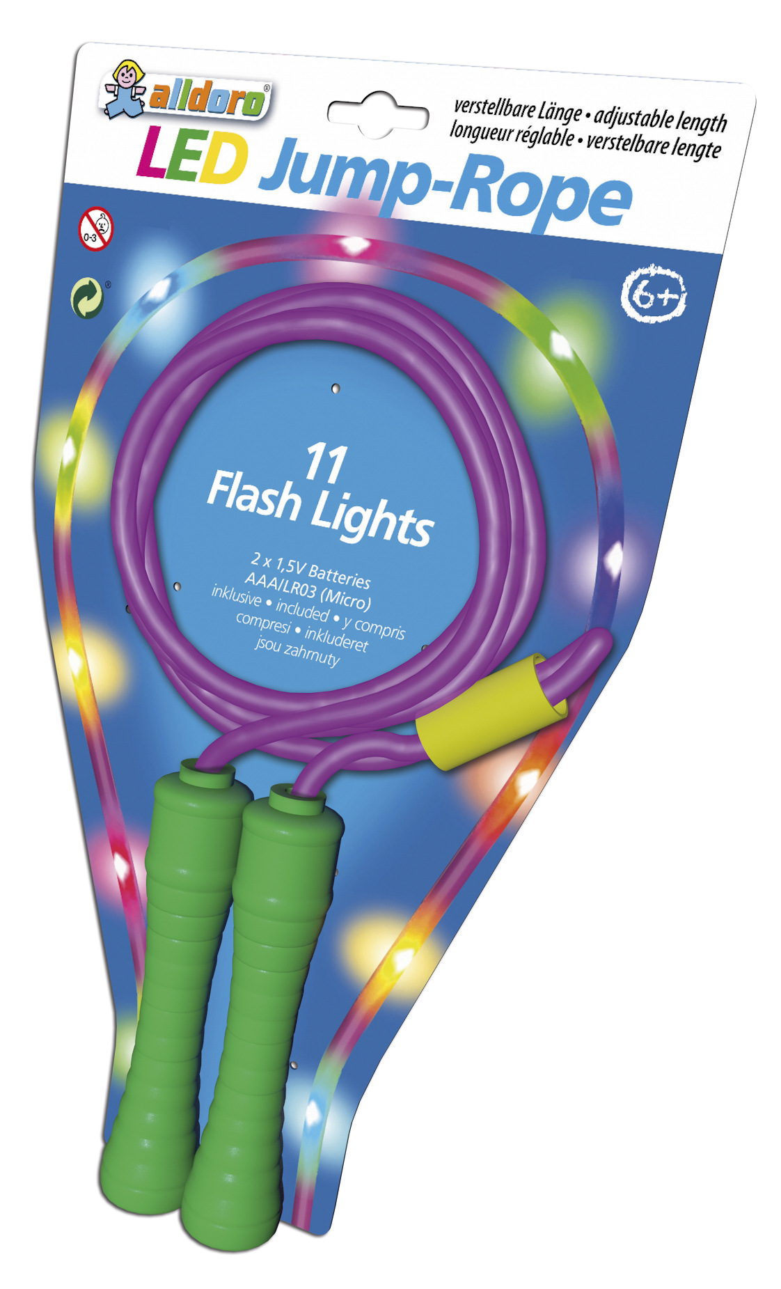 Svítící švihadlo, které při skákání svítí a bliká různými barvami.