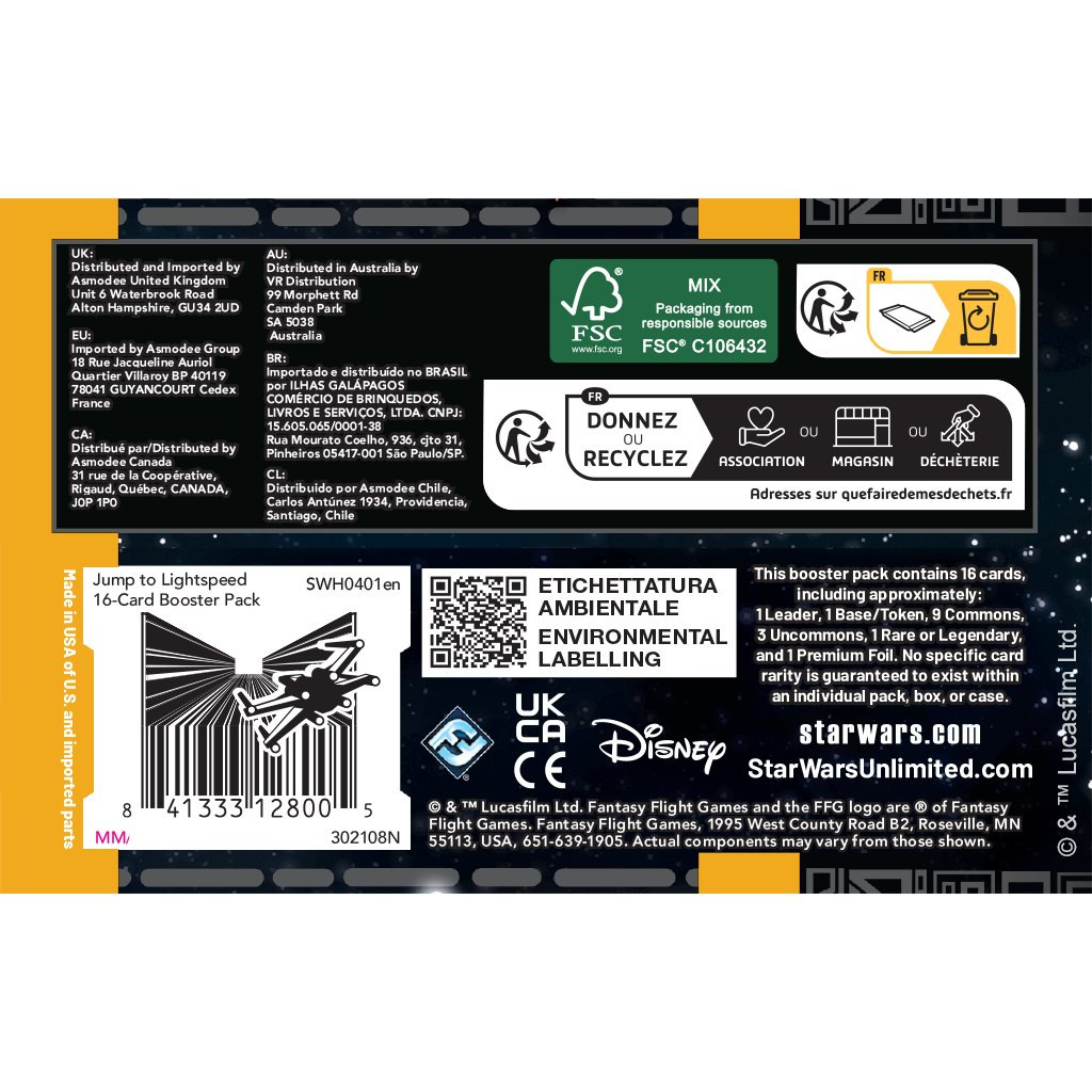 Vstupte do galaxie nekonečných možností s hrou Star Wars™: Unlimited! V této rychlé a snadno pochopitelné karetní hře si změříte síly s protihráčem v napínavých soubojích plných ikonických postav ze světa Star Wars. Tento booster balíček ze čtvrté sady Jump to Lightspeed obsahuje 16 karet, z toho 9 běžných karet, 3 neobvyklé karty, 1 vzácnou nebo legendární kartu, 1 velitele, 1 základnu / žeton a 1 fóliovou kartu.