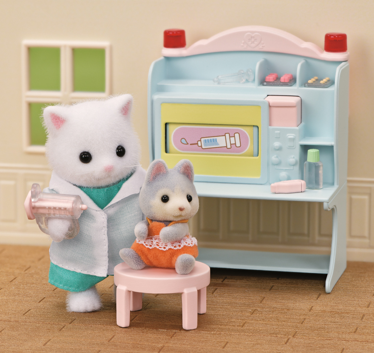 Startovací sada vesnický lékař obsahuje vše, co potřebujete ke hře na doktora, včetně figurky v bílém plášti, kontrolního přístroje a dalších lékařských nástrojů. Představujeme perskou kočku, doktorku Dawn. Pomozte udržovat zdraví pomocí přiložených stříkaček, stetoskopu, postele, invalidního vozíku, léků a dalšího příslušenství. Doktorský sáček lze použít k uložení stříkaček, stetoskopu a léků. Stimuluje nápadité hraní rolí u dětí. Vhodné pro děti od tří let.