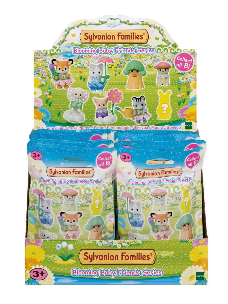 Místní obyvatelé Sylvanian Families milují překvapení, a nejvíce tajemství se ukrývá v tajemných sáčcích. Každý tajemný sáček obsahuje roztomilou figurku miminka a malé jarní doplňky. Hádej, jaké překvapení se skrývá v sáčku, a pak zjisti, kdo je uvnitř. Sada obsahuje 8 různých figurek včetně jedné tajemné. Malá Kaya z rodiny pouštních lišek s velkou květinou, malá Lucia z rodiny jelínků s hůlkou ve tvaru květiny, malý Pino Fontana z rodiny Latte koček s deštníčkem ve tvaru květiny, malá Liberty Harvey z rodiny Fisher koček s konvičkou na zalévání květin, malý Sage z rodiny Flora Rabbit králíků v kostýmu víly, malý John Splashy z rodiny říčních vyder přestrojený za strom, malá Rae z rodiny husky v růžovém klobouku ve tvaru houby a speciální tajemná figurka. Hračky Sylvanian Families rozvíjejí představivost a povzbuzují děti k hraní rolí. Hra s figurkami rozvíjí kreativitu a učí emocím vytvářením a vyprávěním příběhů založených na každodenních zážitcích a pozorování světa. Vyznačují se