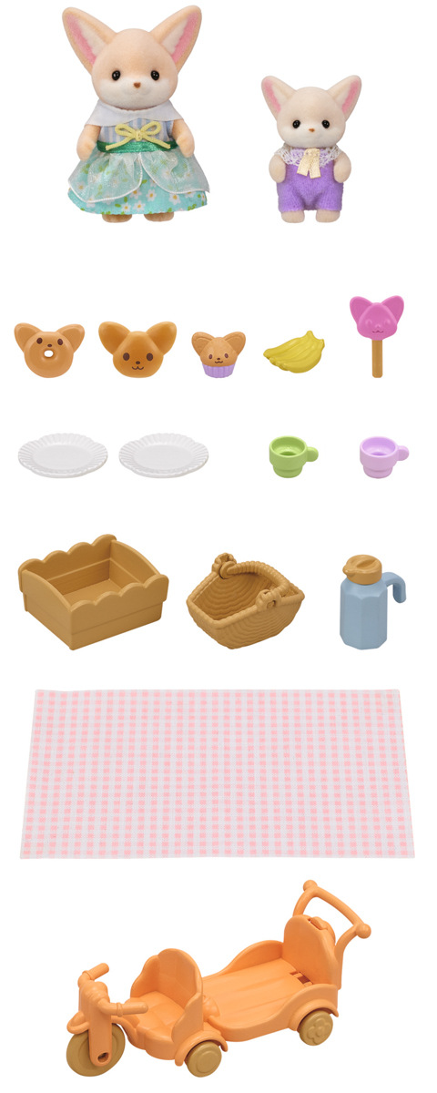 Fenci na pikniku – představujeme členy rodiny fenků, kteří jsou široko daleko známí pro své velké špičaté uši. Obsahuje holčičku Jasmine a miminko Caleba spolu s vozíkem a vybavením na piknik. Ve vozíku jsou housky, koblihy, bonbóny a košíčky. Košík lze vyjmout, aby byl dostatek místa na dítě. Stimuluje nápadité hraní rolí u dětí. Vhodné pro děti od tří let.
