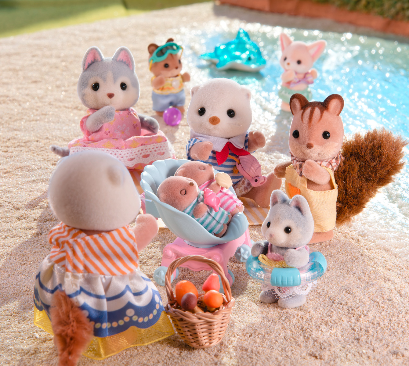 Poznejte rodinu mořských vyder Sylvanian Families. Sada obsahuje 4 roztomilé figurky rodiny mořských vyder pokryté měkkým semišem. Mořské vydry mají oblé tvary, malá ouška a roztomilé čumáčky. Vydry milují výlety k moři, kde se cítí jako doma. Maminka Myra, tatínek Colin a dvojčata Cary a Courtney rádi sbírají mušle a pozorují vlny. Dvojčata jezdí v roztomilém vozíku ve tvaru mušle. Cary a Courtney drží své oblíbené mušle. Tatínek Colin miluje trávit čas na pláži a pozorovat moře. Maminka Myra je známá tím, jak rychle dokáže otevřít mušle. Její polévka z mušlí je oblíbená mezi všemi obyvateli Sylvanian Families. Hračky Sylvanian Families rozvíjejí představivost a povzbuzují děti k hraní rolí. Hra s figurkami rozvíjí kreativitu a učí emocím vytvářením a vyprávěním příběhů založených na každodenních zážitcích a pozorování světa. Vyznačují se nejvyšší kvalitou a výjimečným důrazem na detaily. Figurky Sylvanian Families mají pohyblivé končetiny a hlavu. Baleno v krabičce. Rozměry balení: 1