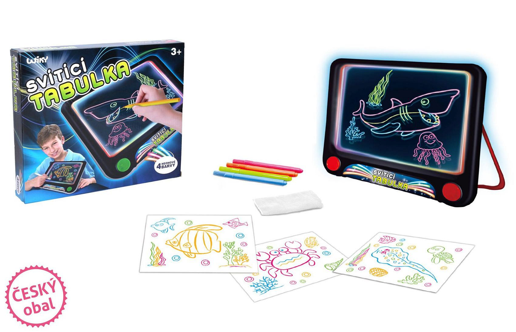 Popis Wiky Tabulka kreslící svítící barevná plast 25cm na baterie se světlem v krabici 30x25cm