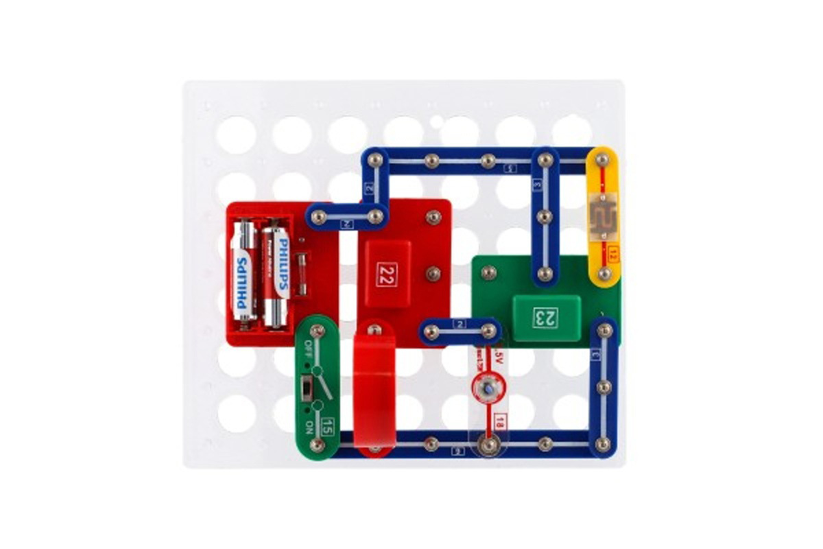 Elektronická stavebnice, která děti neustále nutí stavět, zkoušet a objevovat nové elektronické projekty. Obsahuje podrobný návod v češtině, který nabízí schémata 180 projektů. Vstupte do tajemného světa elektroniky a elektrotechniky. Díky jednoduchému principu sestavování přehlédnému rozložení děti snadno pochopí princip elektrických obvodů. Vinikající i jako školní pomůcka nebo nástroj pro vlastní domácí projekty. Během hry dětí dále objeví práci motoru, přepínačů, zdrojů zvuku a světla, senzorů a integrovaných obvodů a mnoho dalšího. Navíc díky své univerzálnosti je tato stavebnice ideální pro školní využití a tvorbu vlastních elektronických projektů. Provoz na baterie 4xAA (nejsou součástí výrobku). Vhodné pro děti od 6 let.