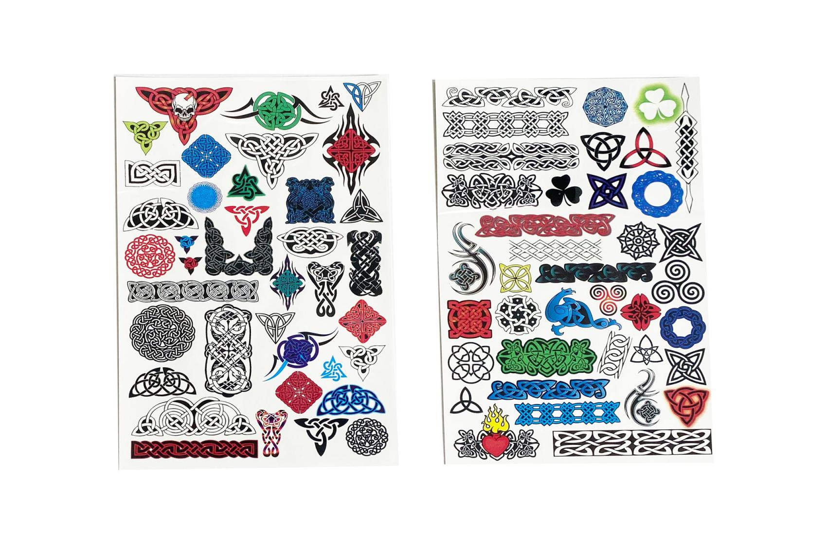 Tetovací samolepky kluci. Více variant v display boxu. Rozměry archu: 15,3x0,1x25cm. Návod na aplikaci na obale: Sloupnout folii, přilepit papír s tetováním na pokožku, namočit a přitlačit houbičkou, sundat opatrně papír.