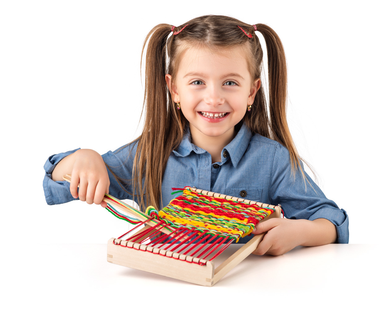 Vynikající hračka pro rozvoj jemné motoriky. Na stav se nejprve vypnou vlněná vlákna, která se následně pomocí dvou člunků s namotanou vlnou provlékají do té doby, dokud nevznikne kompletní dečka. Sada obsahuje: 2 x člunek, 4x klubko vlněné příze, 1 x hřeben, 2 x krajní dráty. | Věk : 3+| Rozměr : 26 x 17,5 x 3,5 cm