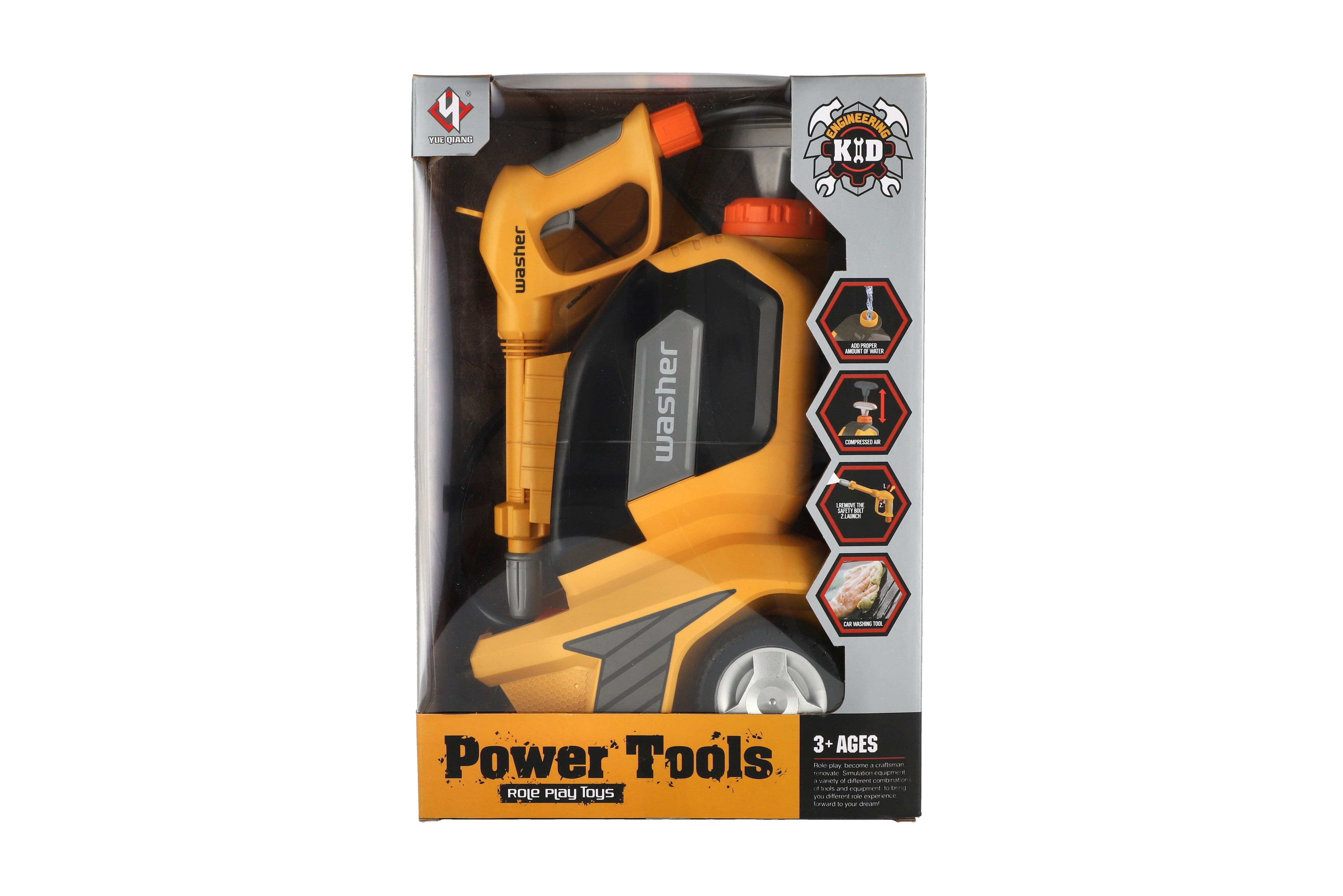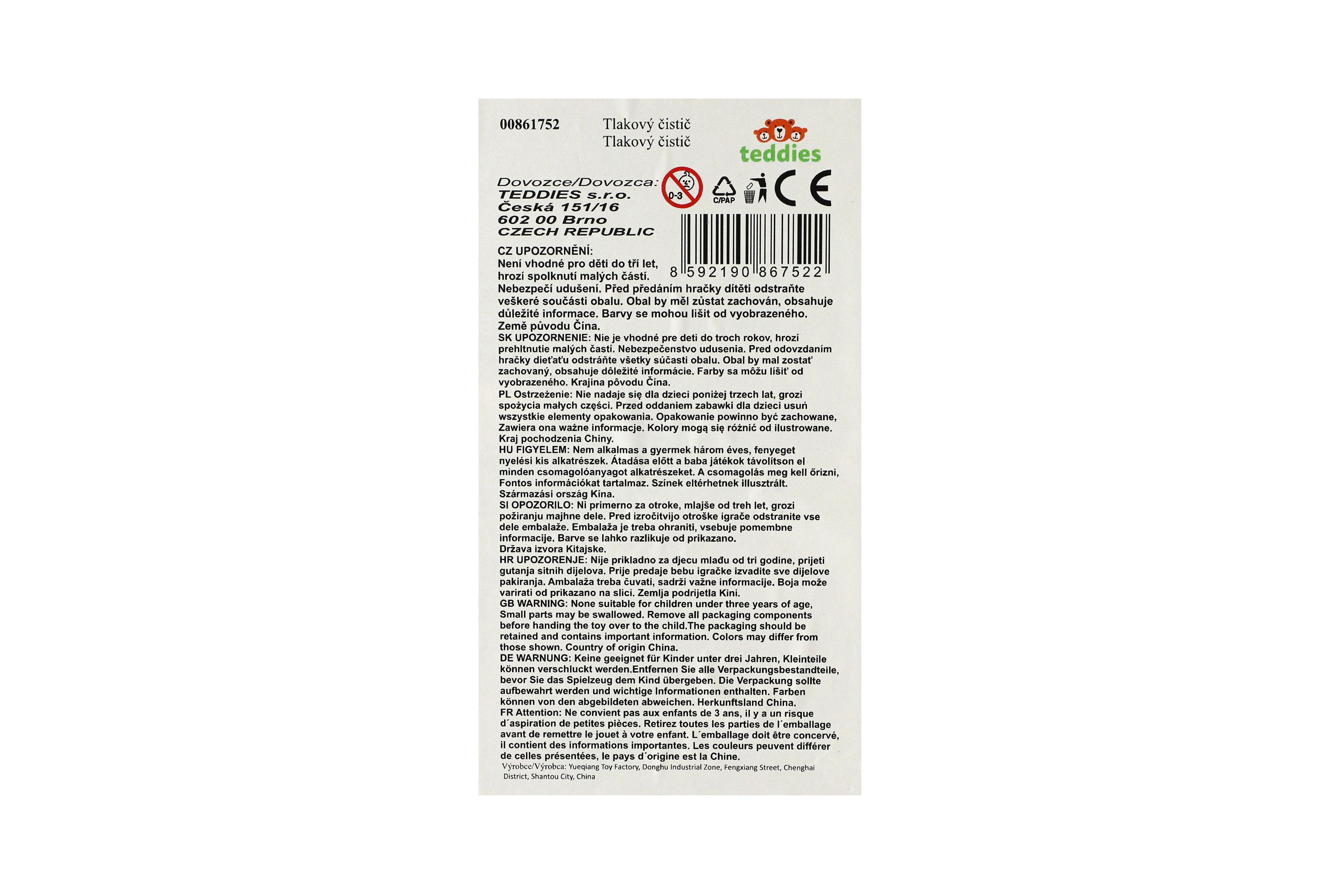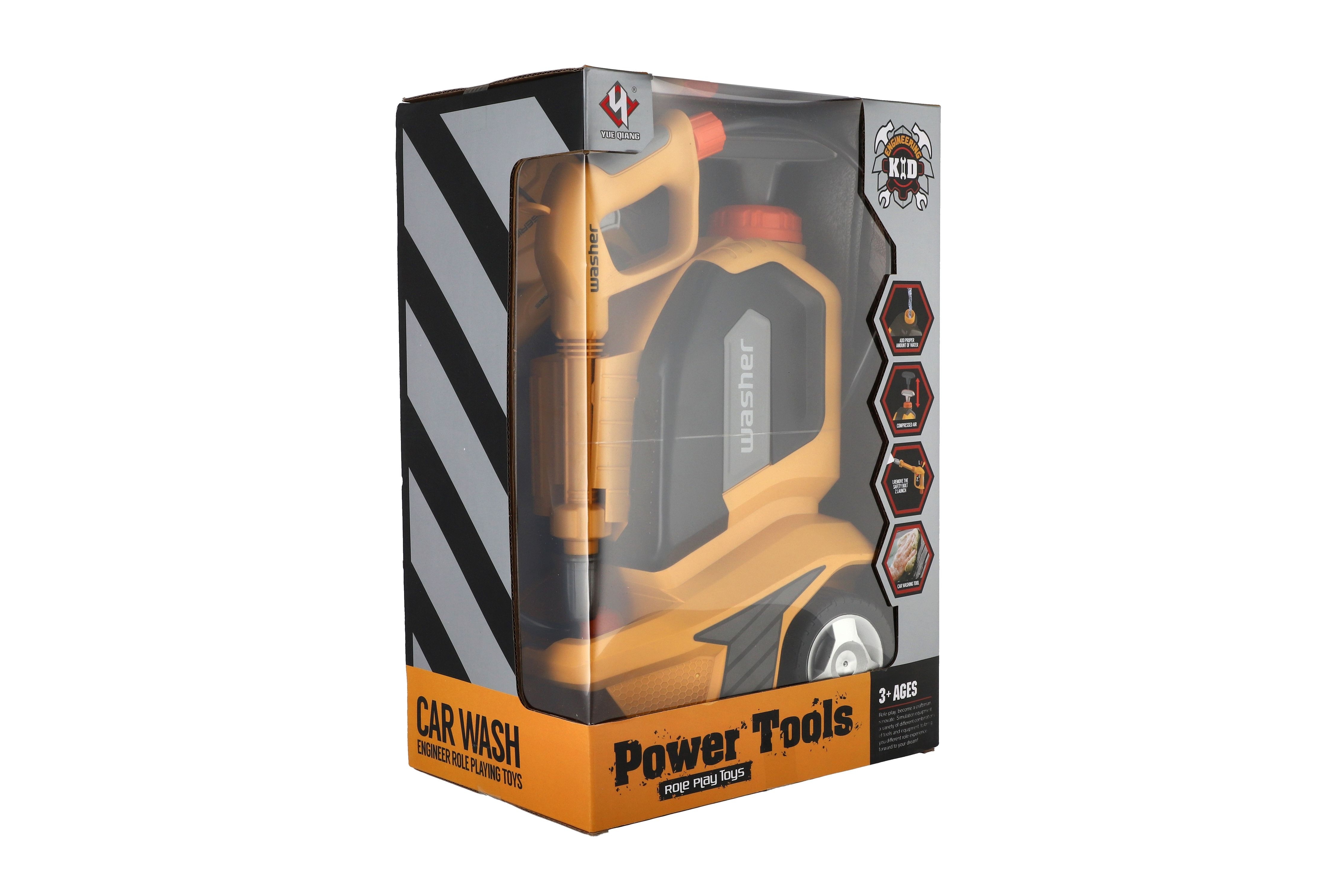 Tato dětská vysokotlaká myčka je skvělou hračkou pro malé pomocníky, kteří rádi napodobují práci dospělých. Naplňte zásobník vodou, vytvořte tlak pomocí pumpičky, zmáčkněte pistol, ze které začne stříkat voda. Upravovat proud můžete pomocí otočného krytu nakonci hadice. Díky kolečkům a rukojeti je snadné vapku kamkoli přemístit. Součástí balení: Tlakový čistič, houbička, stěrka a hadřík. Velikost vapky: 23 x 35 cm Rozměr balení: 26 x 38 x 17 cm Vhodné pro děti od 3 let