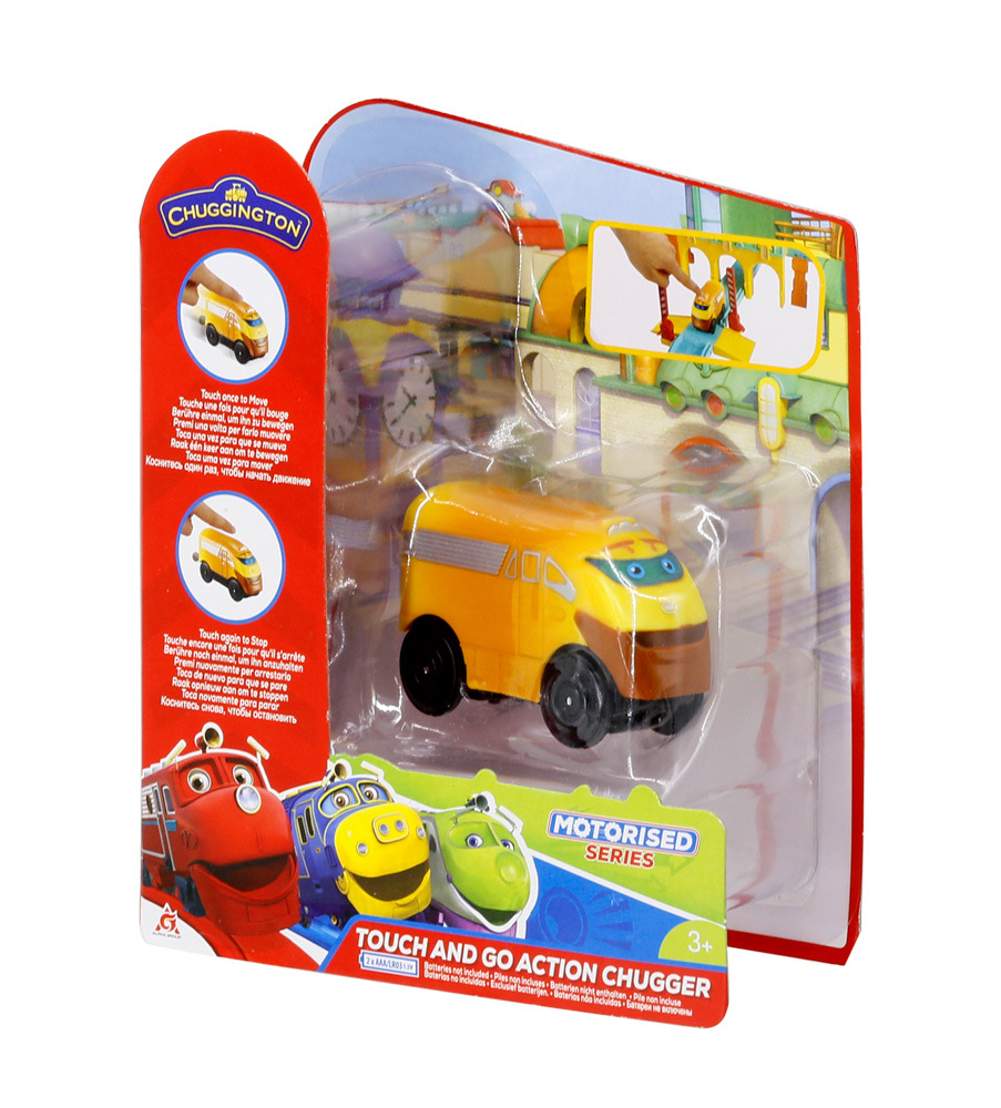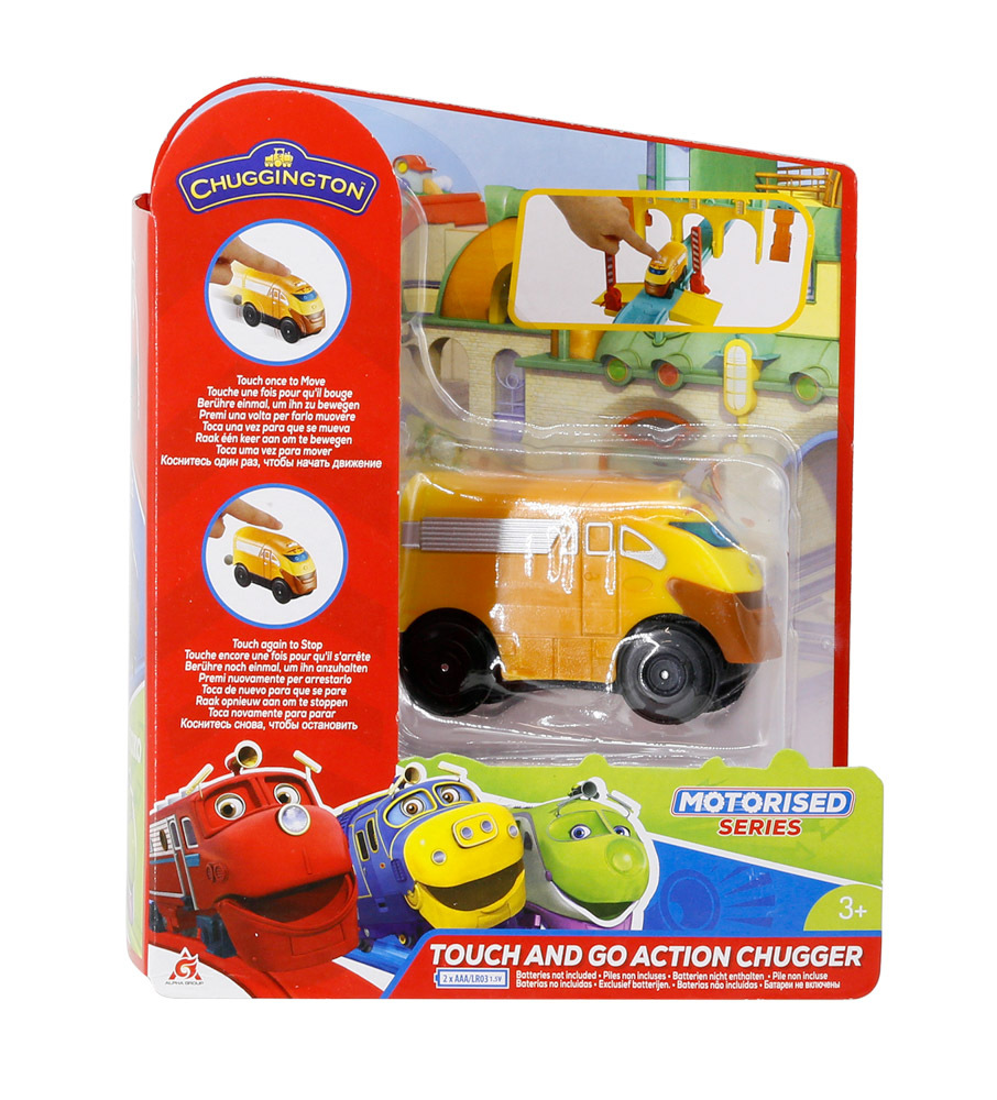 Pohyblivá lokomotiva Touch And Go Super Ciuchcia .Na vršku vláčku se nachází 2 tlačítka. Stiskem jednoho se mechanismus spustí a vláček se rozjede. Stiskem druhého tlačítka se vláček zastaví. Provoz na 2xAAA baterie. Baterie jsou součástí balení. Vláček je kompatibilní s vláčkodráhami Chuggington Všichni na palubu a Safari. Rozměr balení 7 x 18 x 14,5cm. Věk: 3+