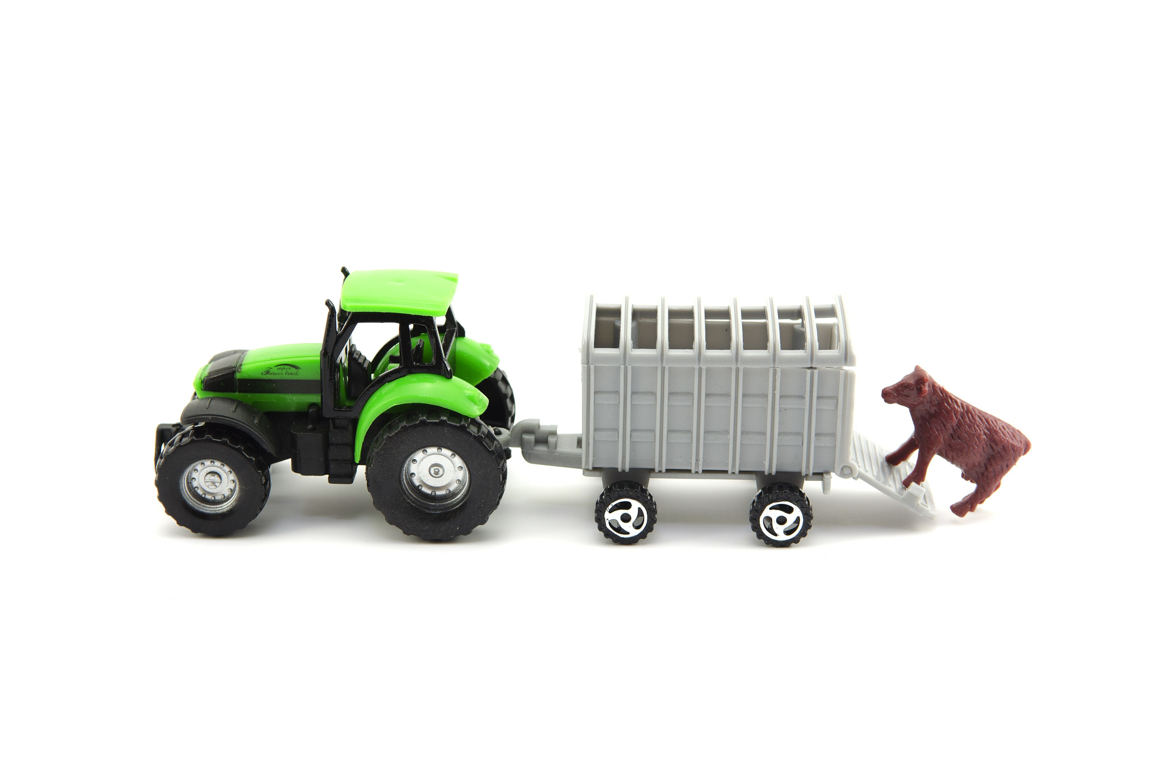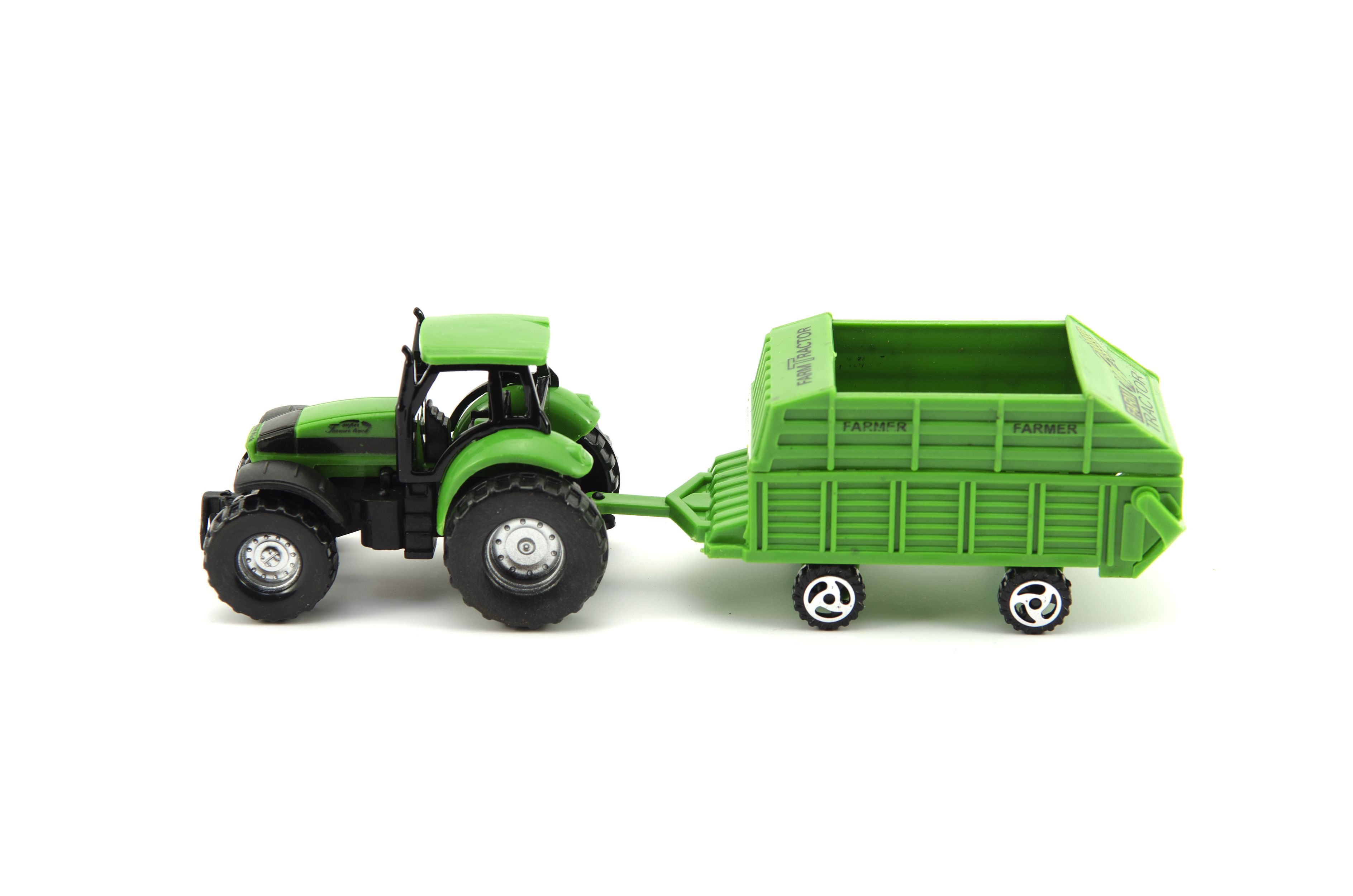Rozšiřte svoji sbírku zemědělské techniky o tento plastový model traktoru s přívěsem. Vhodné od 3 let.