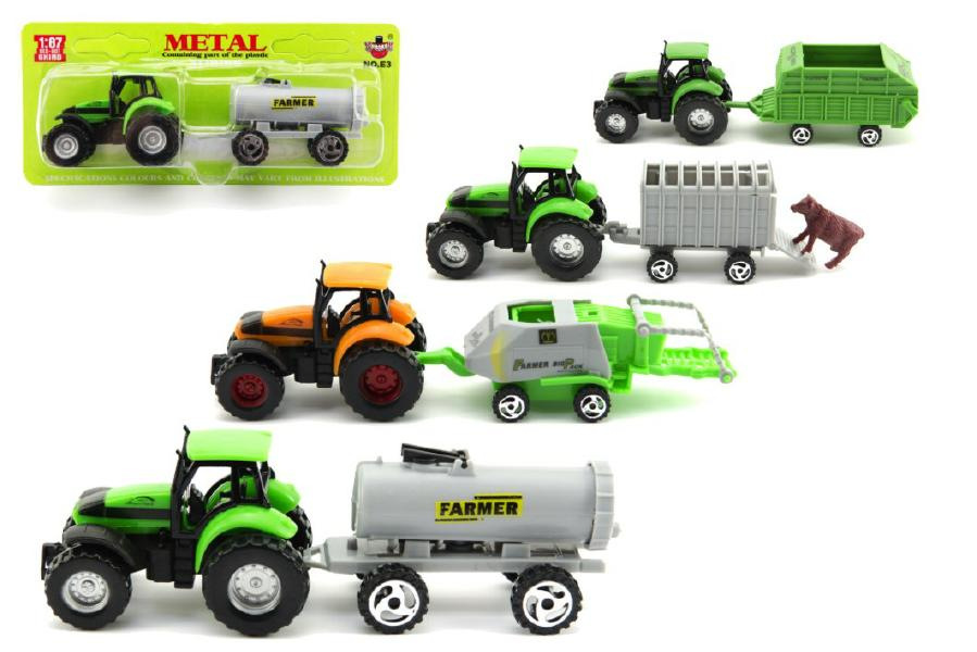 Traktor s přívěsem plast 16cm 6 druhů na kartě