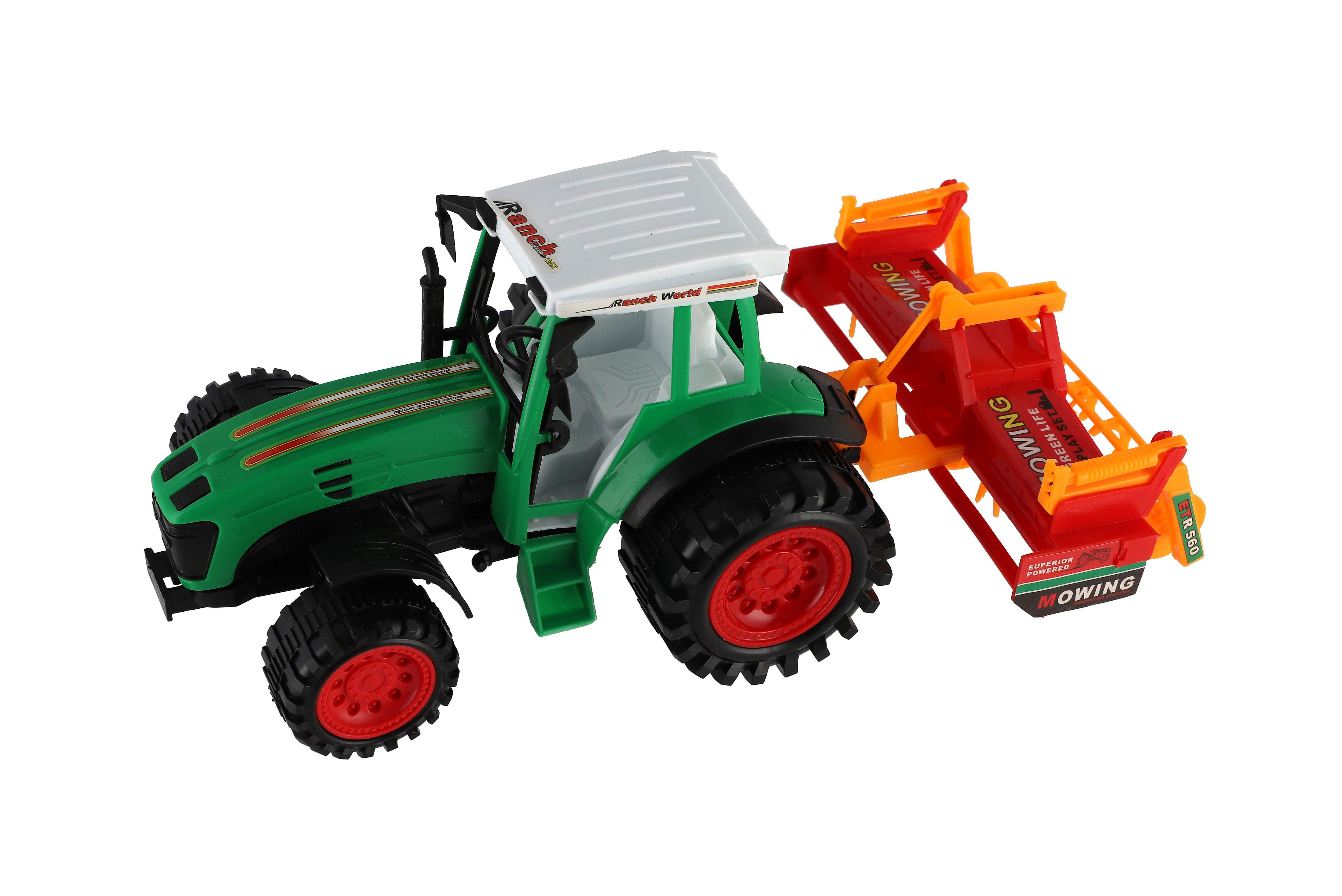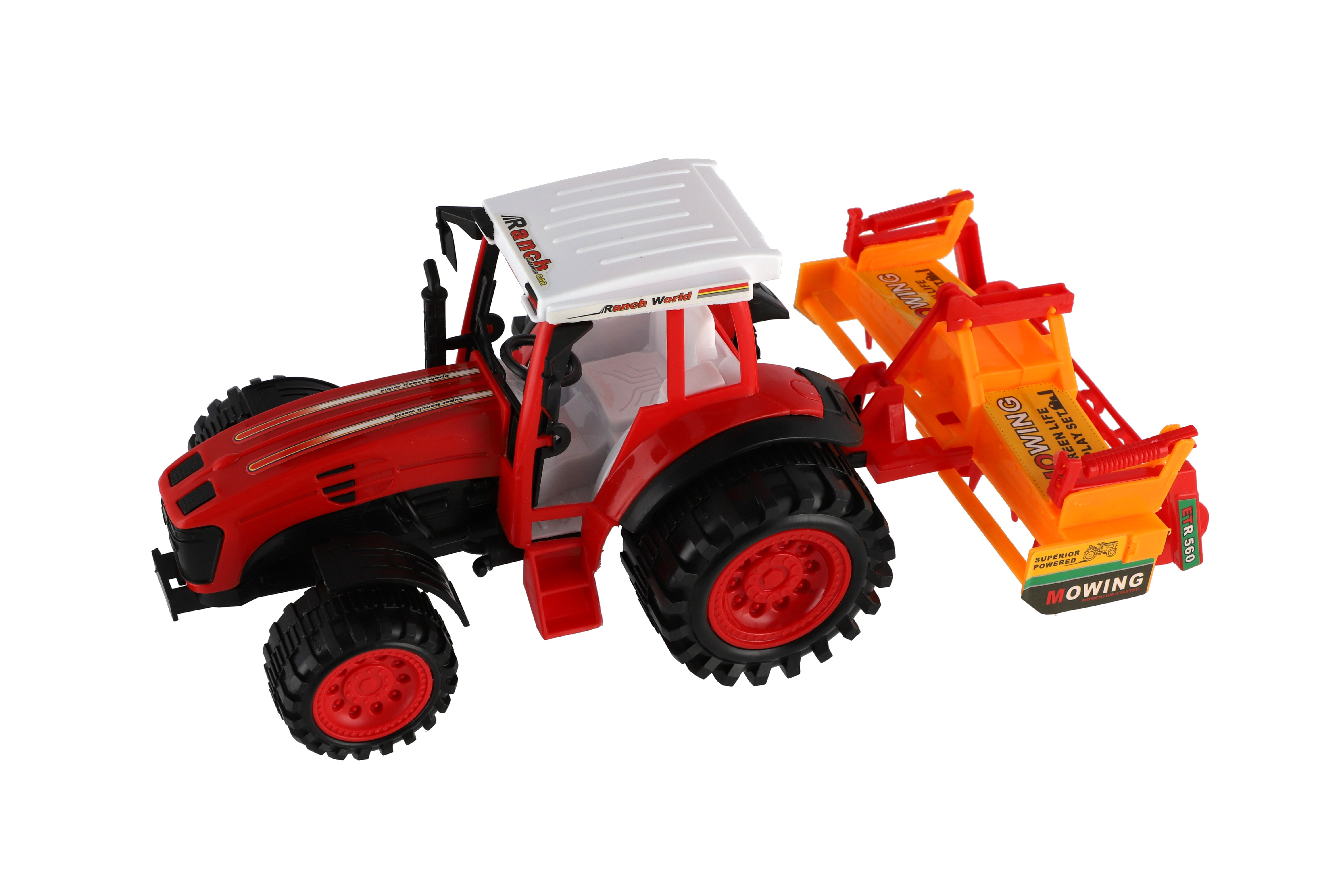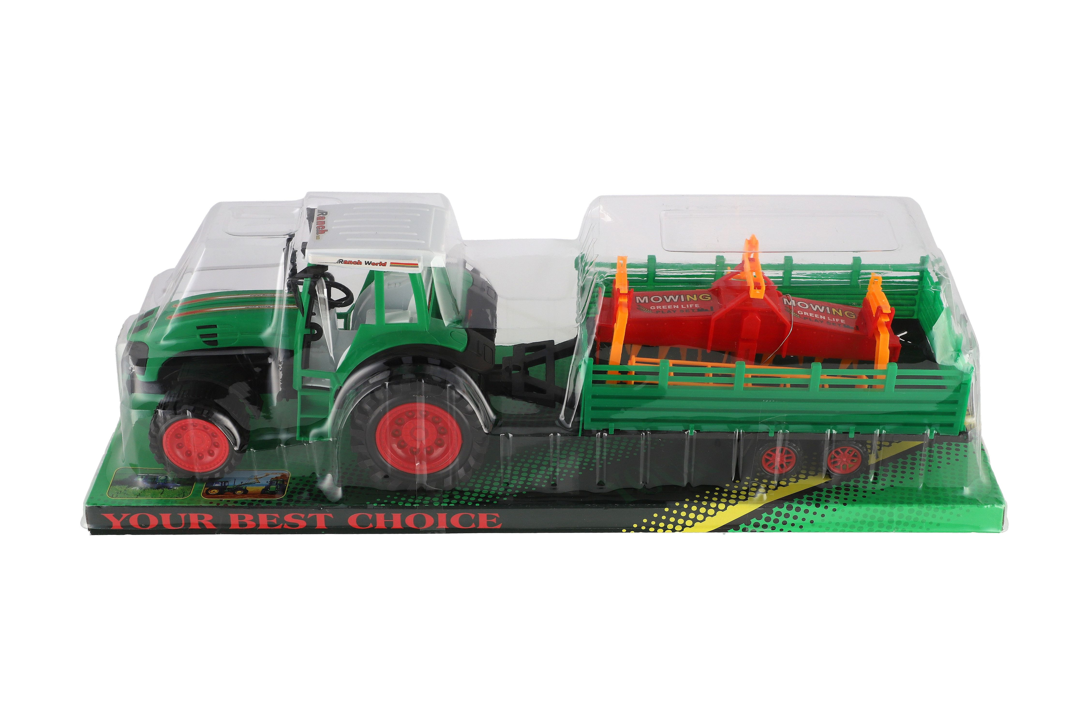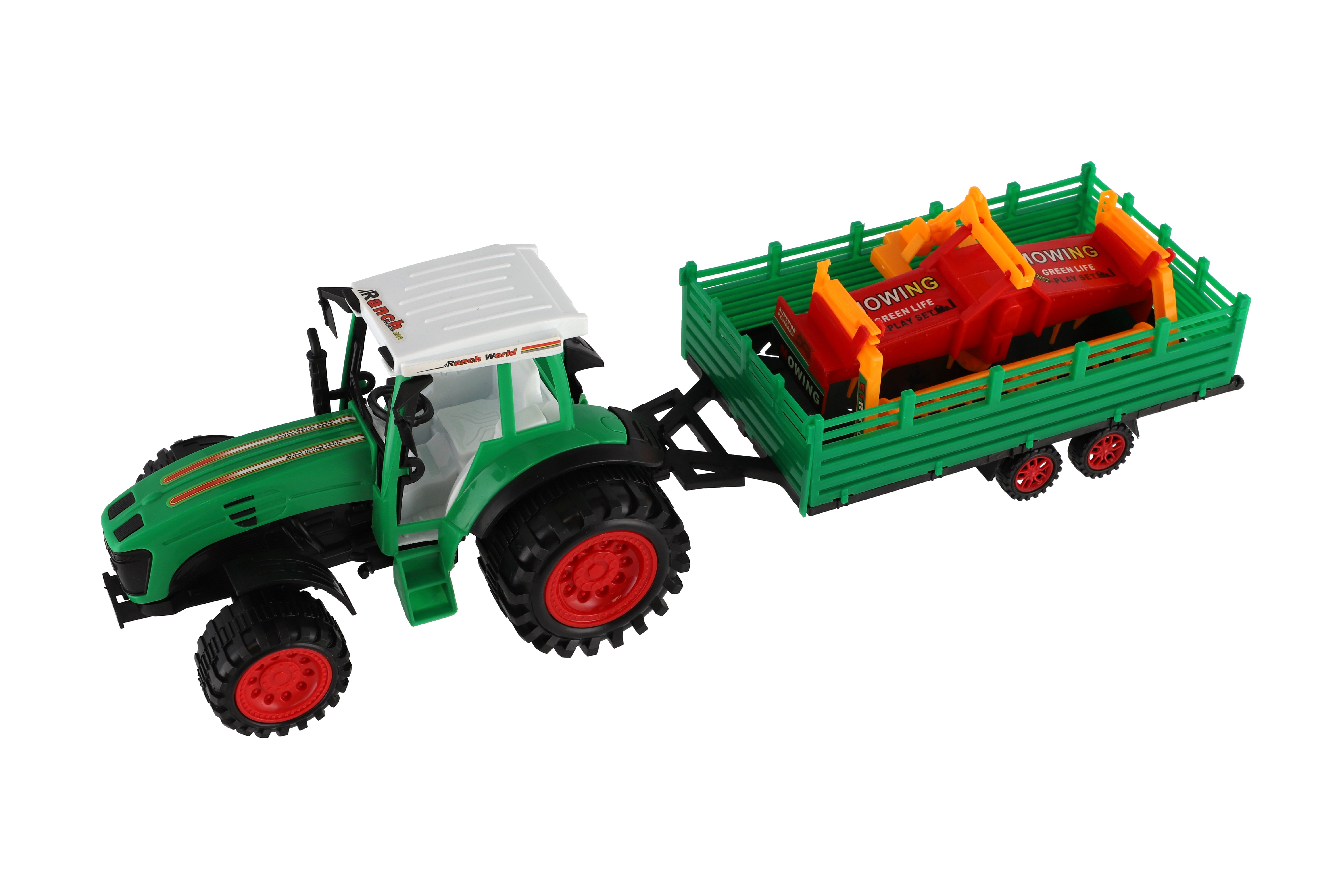 Pro každého malého zemědělce je nepostradatelným, všestranným pomocníkem traktor s přívěsem. Traktor je na setrvačník a je velikosti 46 cm. Nekonečná práce na farmě může začít. Vlek s kombajnovým válcem je možné odpojit. Rozměry balení 19 x 16 x 55 cm. Vhodné pro děti od 3 let.